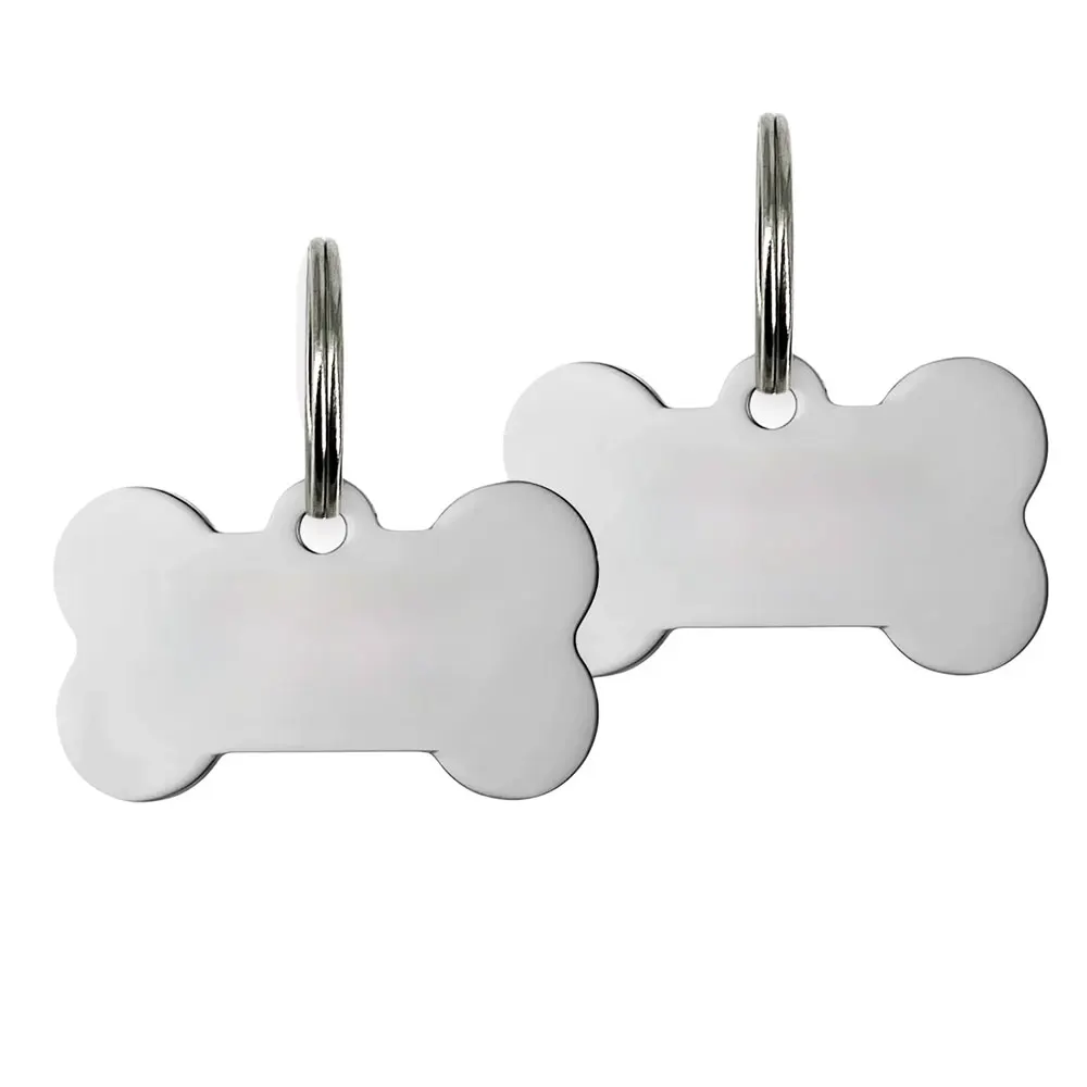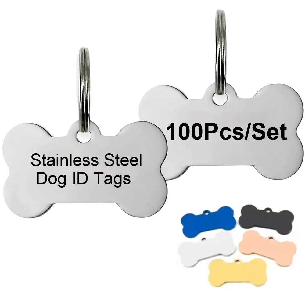 KIYUE 100 Uds. Etiqueta de identificación de perro de acero inoxidable de hueso para hombre, etiqueta de perro para mascota, colgante con placa de nombre, collar personalizado grabado