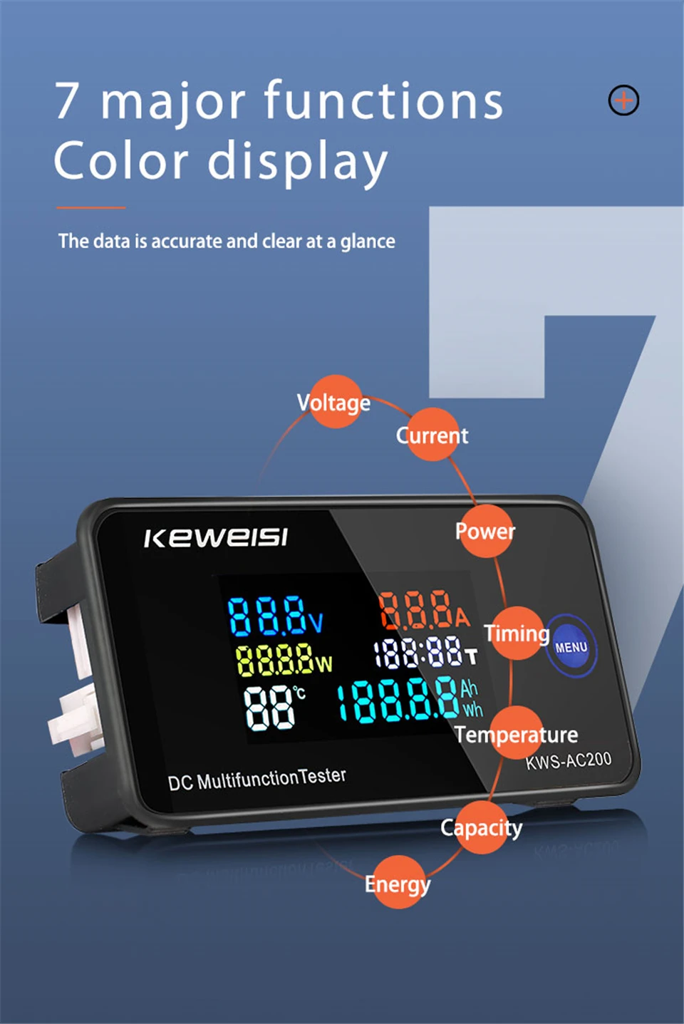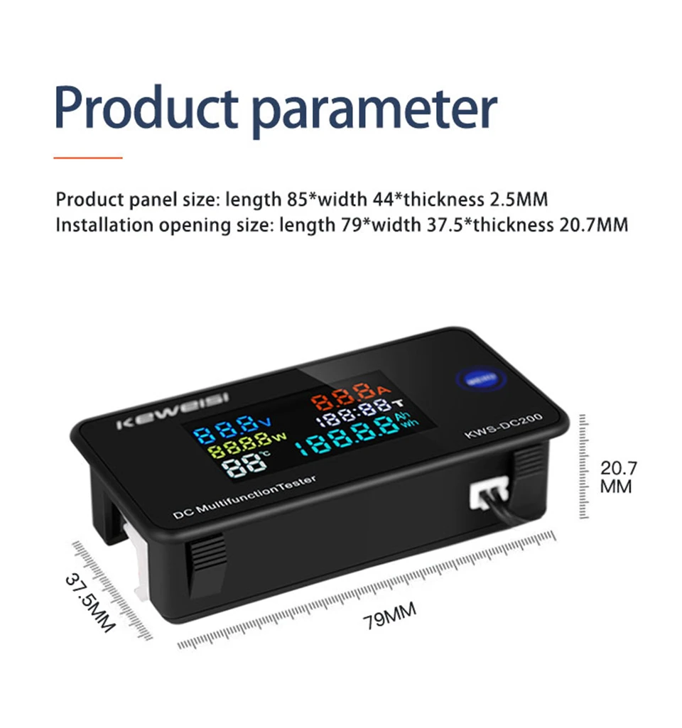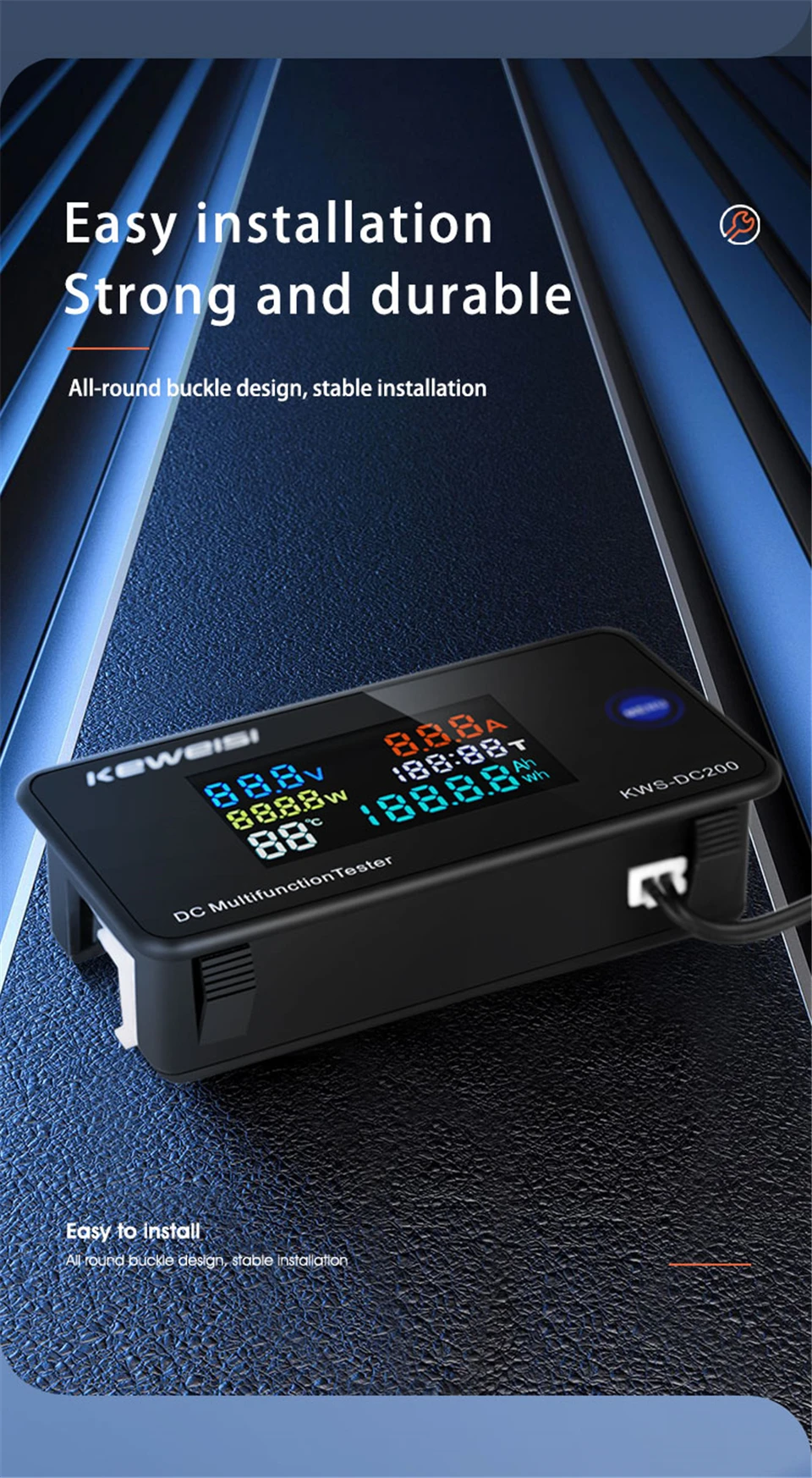 KWS-DC-200 voltímetro Digital amperímetro DC 0-200V KWS medidor de energía LED Color DC vatímetro eléctrico con función de reinicio 0-100A