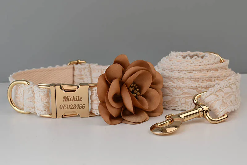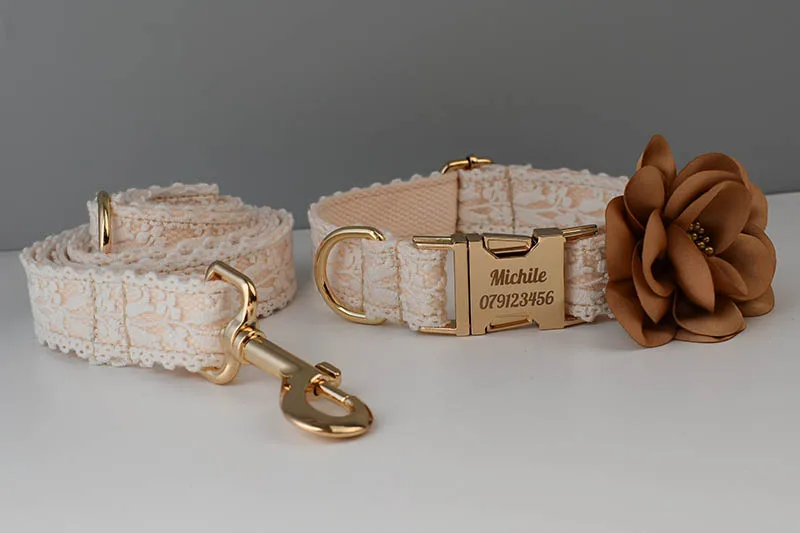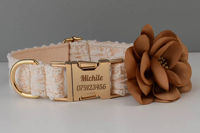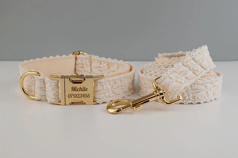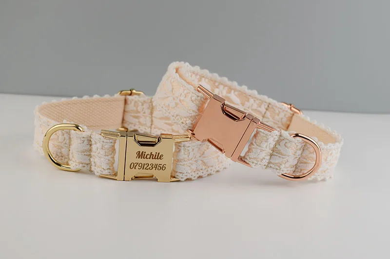 Juego de correa de Collar de perro grabado gratis para collar de mascota mediano grande accesorios de boda para perro collares de perro femenino