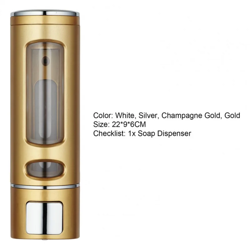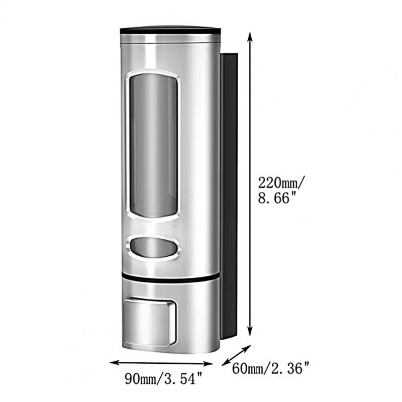 La longitud del dispensador de jabón es de 9cm, el ancho es de 6cm y la altura es de 22cm.