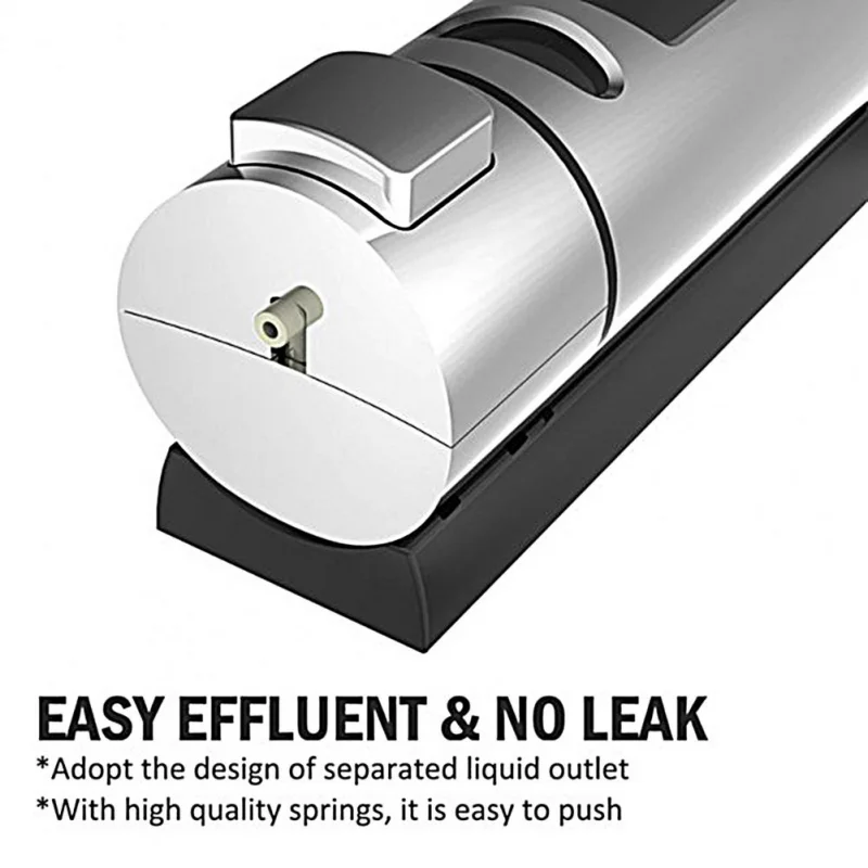 Este dispensador de jabón es fácil de usar. Solo necesita presionarlo ligeramente con la mano y el líquido saldrá por el orificio. Debido al diseño del resorte, solo puede presionarlo una vez a la vez, no hay problemas de fugas.