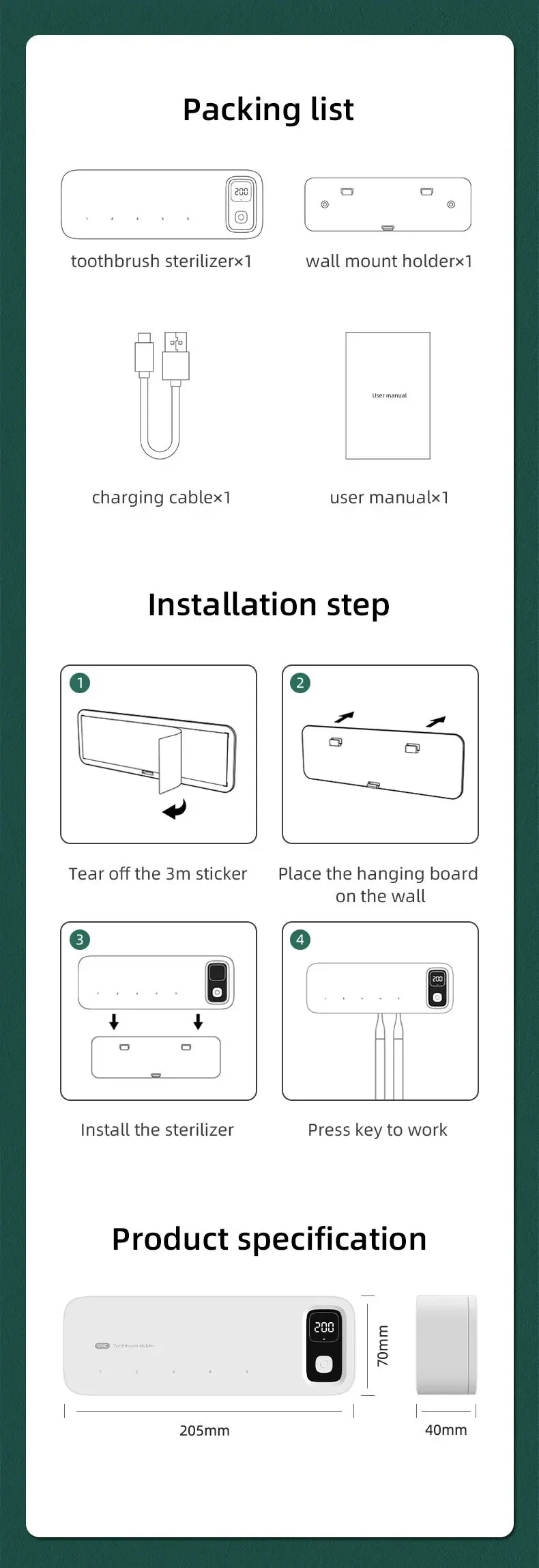 Nombre del producto: soporte para esterilizador de cepillos de dientes