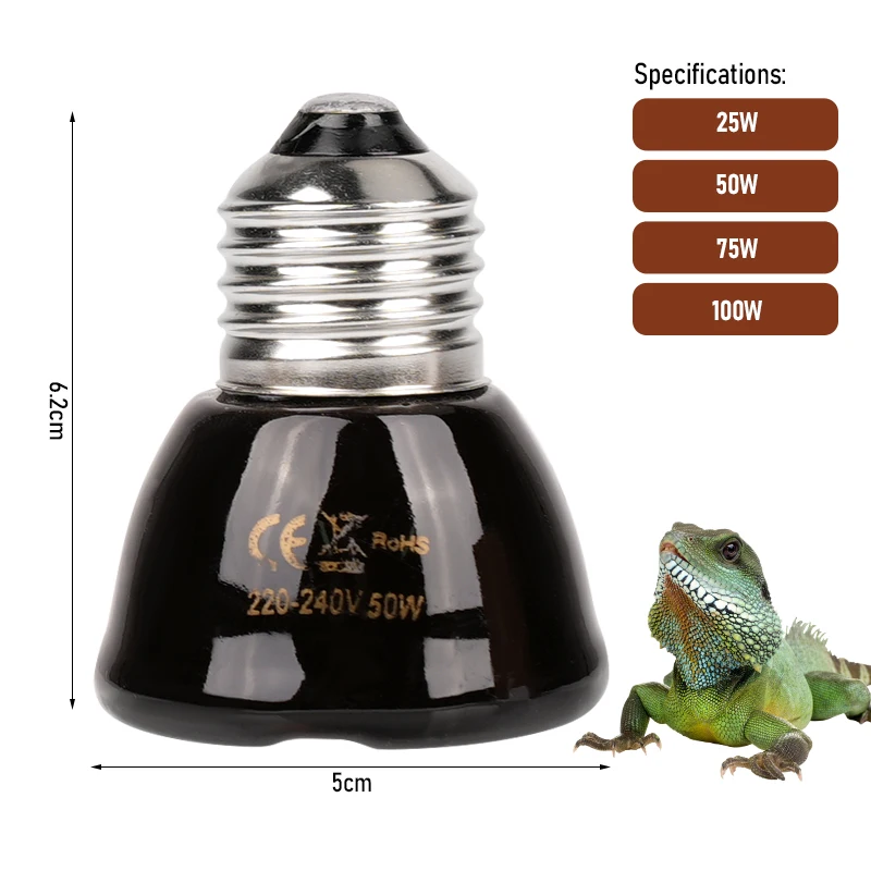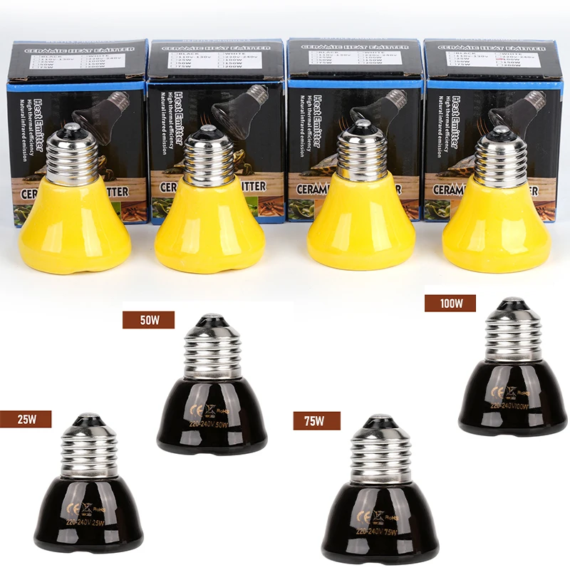 Lámpara calefactora de cerámica para reptiles, lámpara calefactora de cerámica de infrarrojo lejano sin luz para mascotas, Mini lámpara de calor pequeña E27 25W 50W 75W 100W