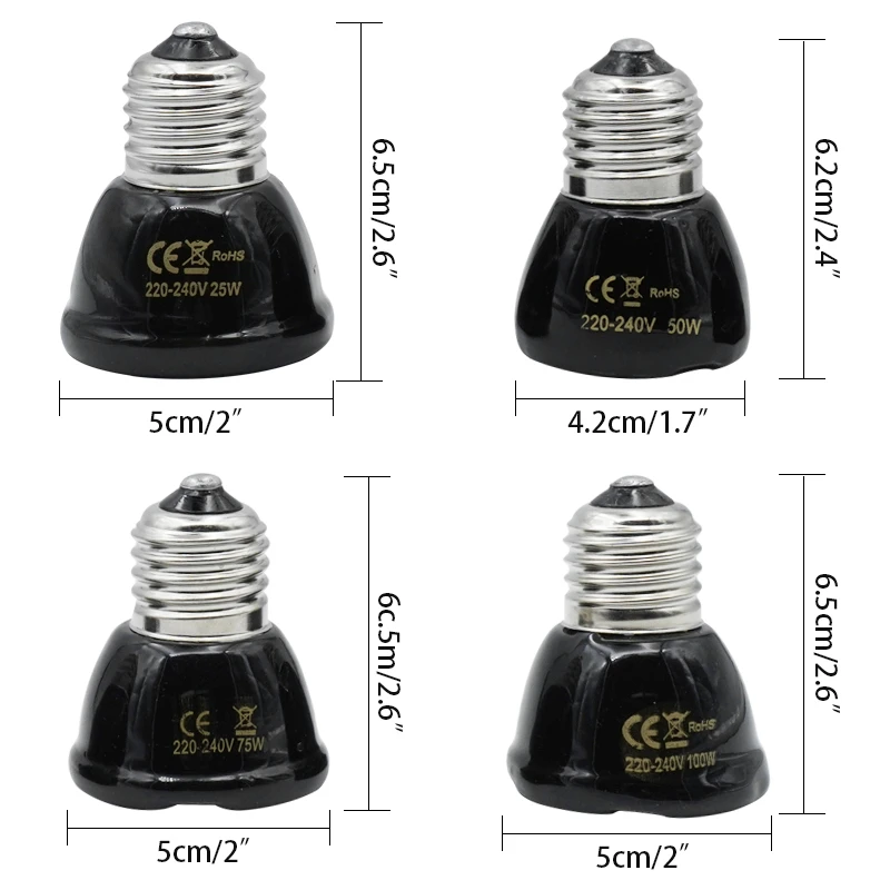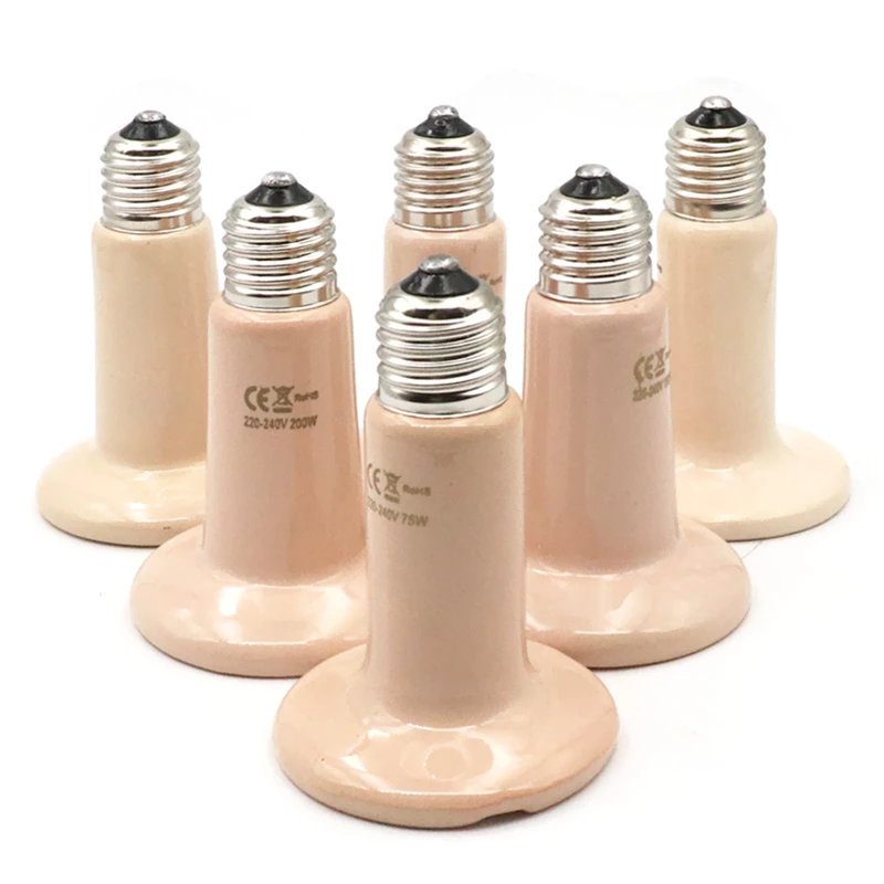 1 Uds lámpara calefactora de cerámica bombilla calefactora de reptiles de calefacción lámpara de calor de 220v calentador infrarrojo lámpara infrarroja de cerámica suministros para reptiles 45mm/75mmDulces consejos: