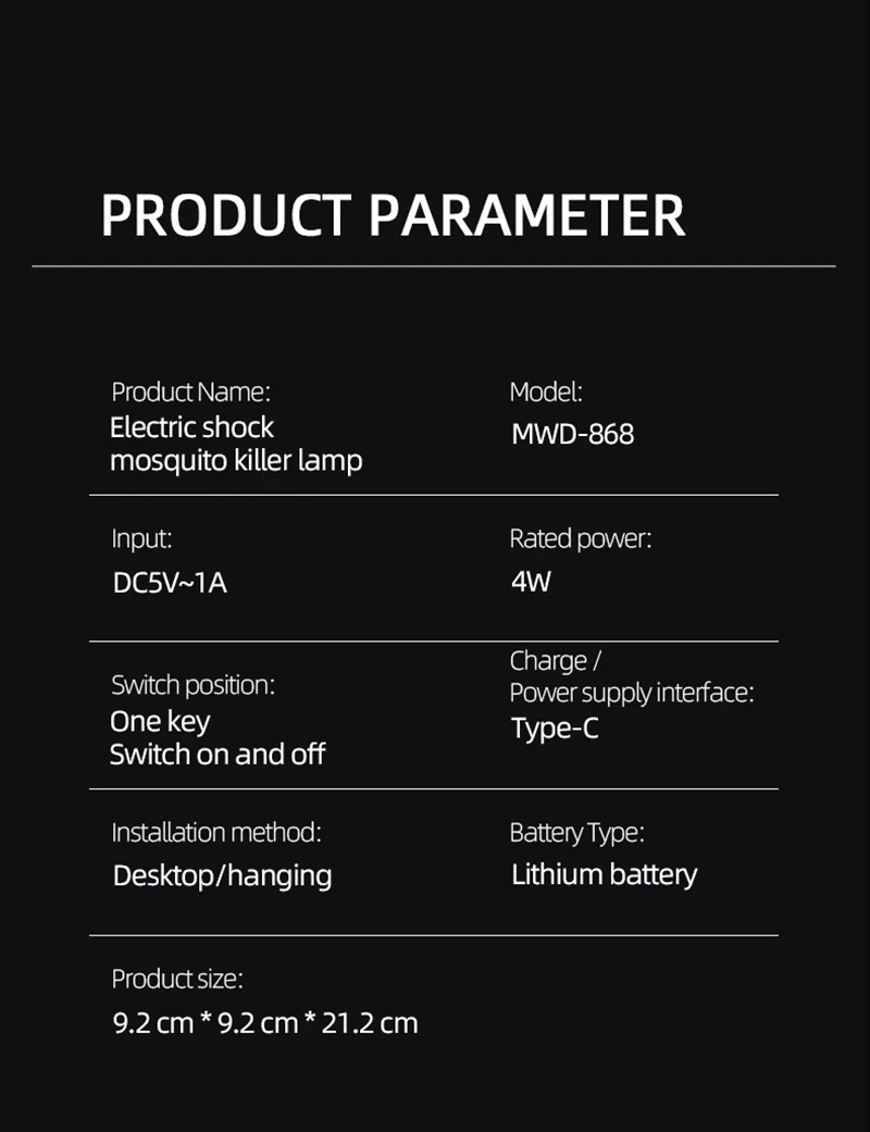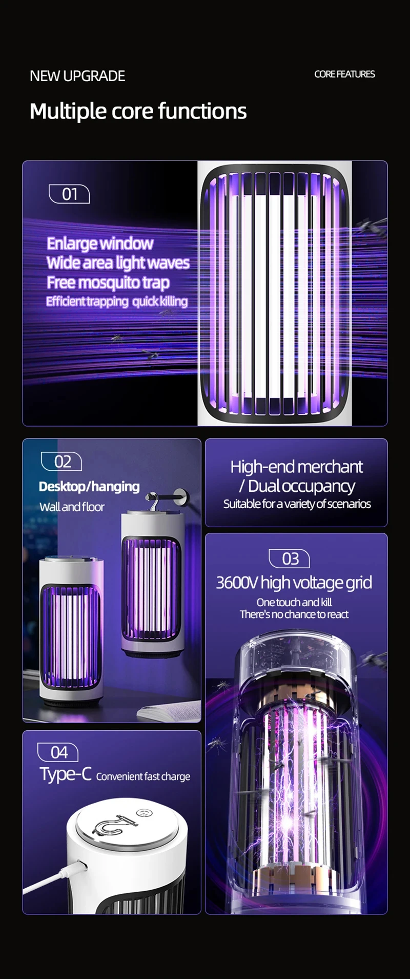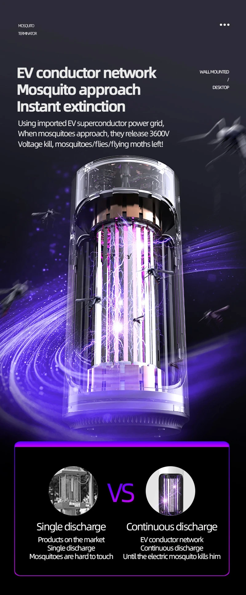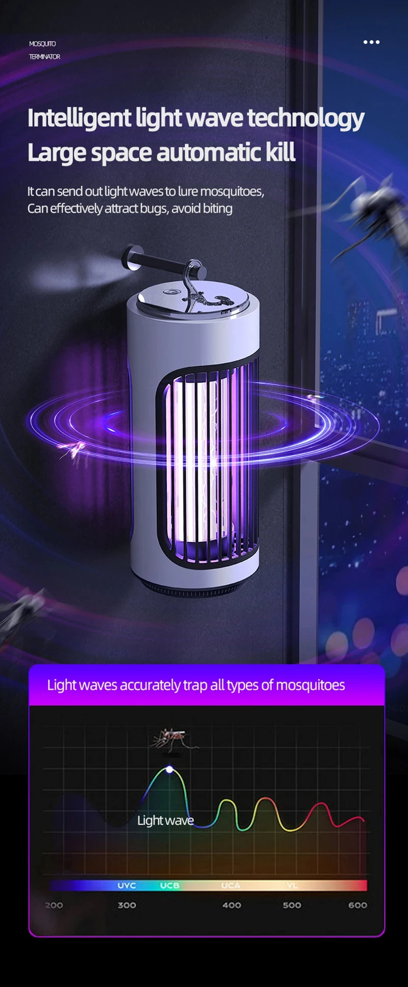 Equipada con una potente luz ultravioleta, esta lámpara atrae a los mosquitos desde todas las direcciones y los elimina al instante.¡Sin escapar!