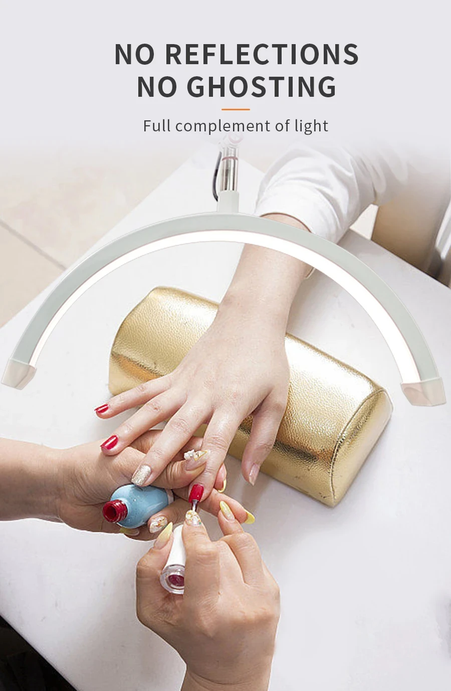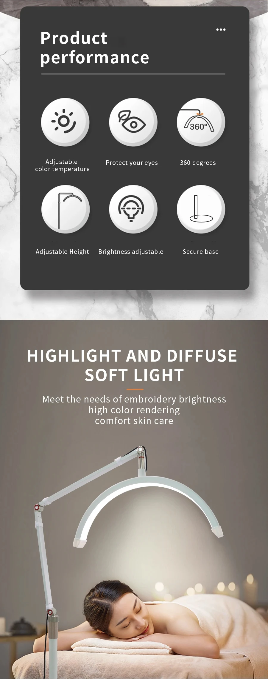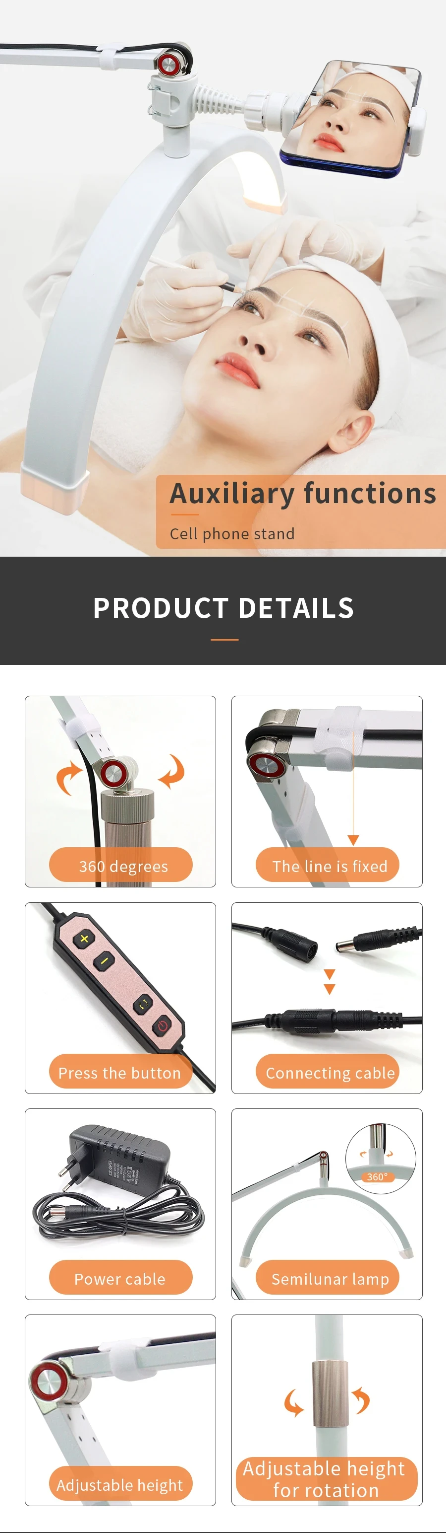 Base resistente: la base de la luz es completamente plana para evitar que se vuelque, el teléfono está bien sujeto al dispositivo, apriete los lados del soporte del teléfono, despliegue automáticamente el brazo y coloque el teléfono sobre él, luego presione el teléfono para soltar el botón en la parte posterior