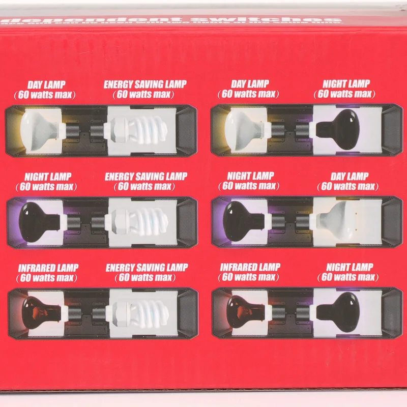Mejore su hábitat para reptiles con la pantalla de lámpara doble horizontal, diseñada para proporcionar condiciones de iluminación óptimas y al mismo tiempo garantizar seguridad y eficiencia.