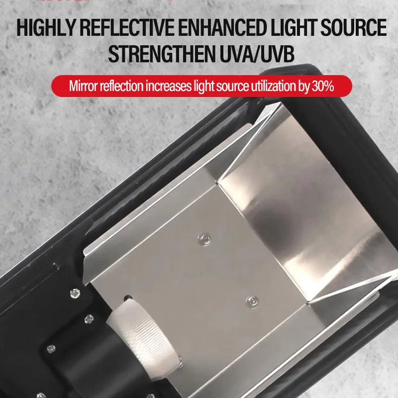 Reflexión del espejo: mejora la distribución de la luz UVA/UVB para una mejor cobertura.