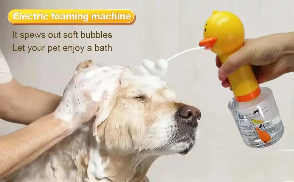 Máquina de espuma eléctrica de pato amarillo, dispensador automático de jabón de mano, lanzador de máquina de espuma para baño de gatos y perros, accesorios para mascotas
