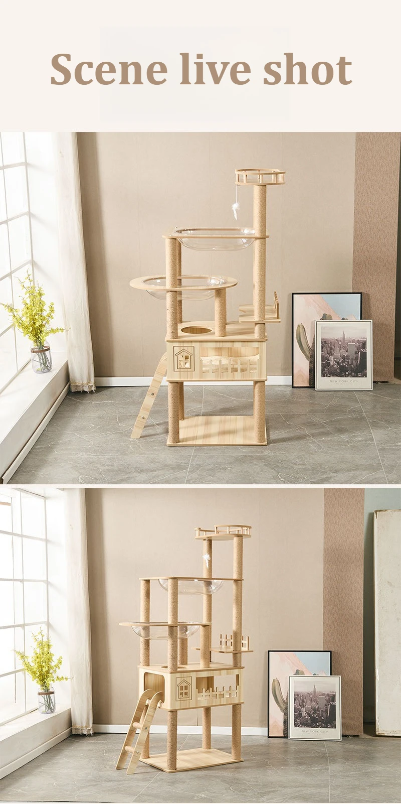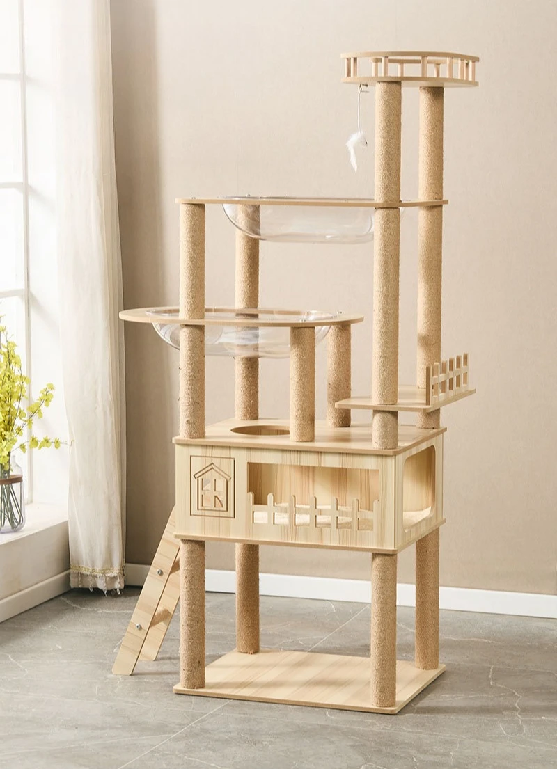 Información del producto Material: tubo de papel de cartón de densidad media y alta de 11 mm de espesor, envuelto con cuerda de yute Aplicable: gato gordo grande, acomoda varios gatos para jugar al mismo tiempo Tamaño: 48X63X168CM Carga máxima: 30KG