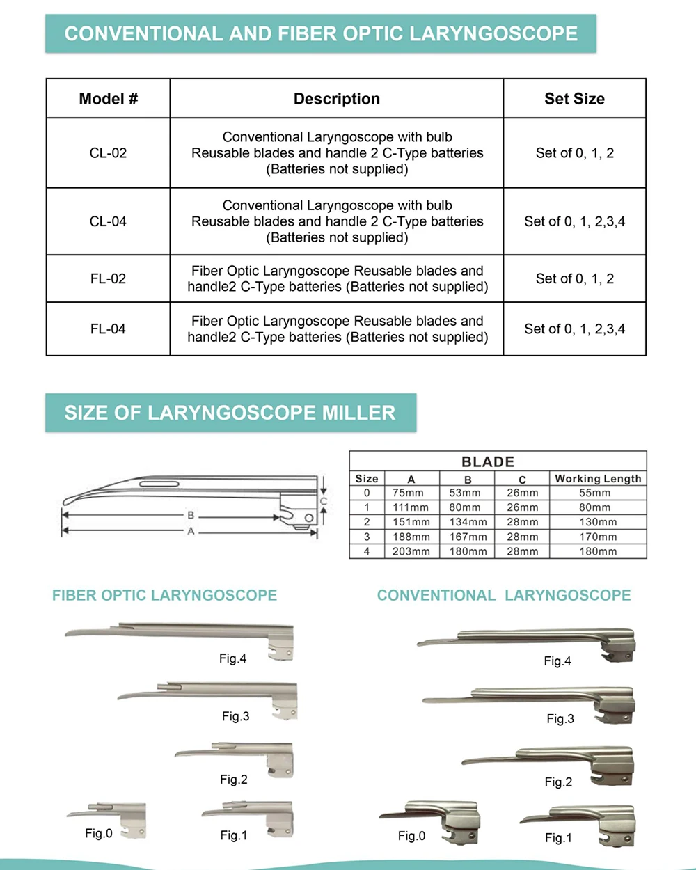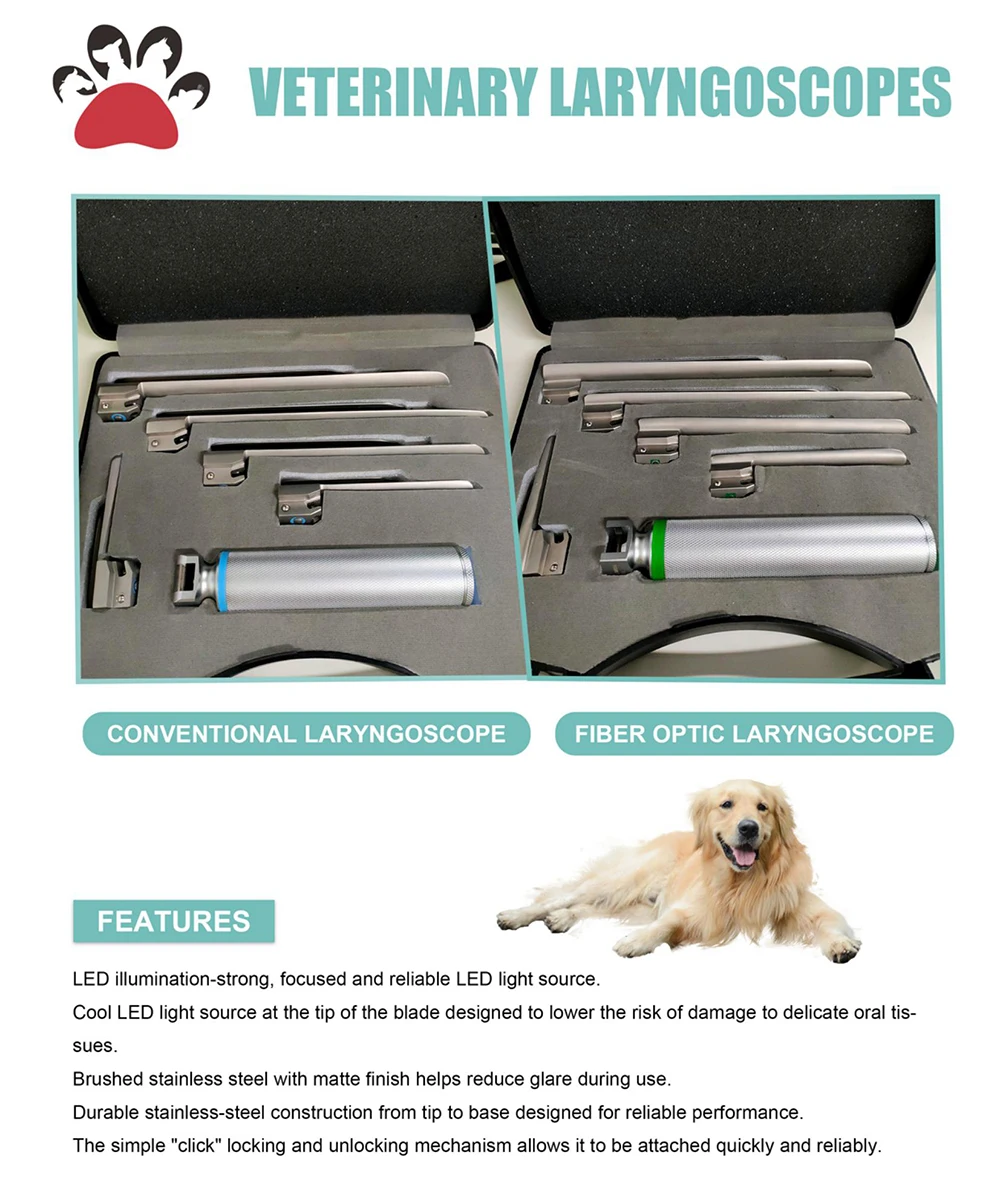 Laringoscopio LED de acero inoxidable, laringoscopio de anestesia Animal, accesorios para clínica, qpentional, 3 piezas y 5 piezas