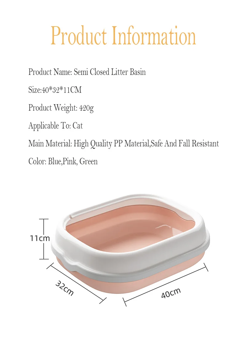 Lavabo de arena para gatos semicerrado, caja de arena para coño extraíble, fácil de limpiar, suministros de baño para mascotas, a prueba de salpicaduras, baño de lavado con bandeja para guantines, lavabo de arena para gatos y mascotas, caja de arena para gatos