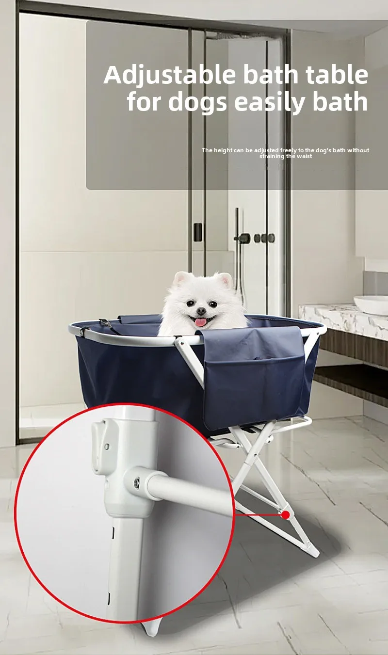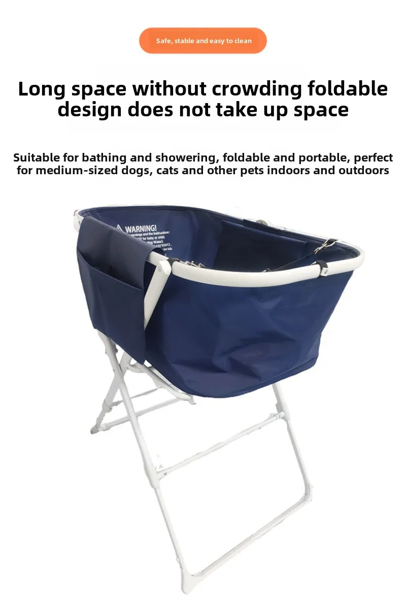 Descripción:Lavabo de baño para mascotas, piscina plegable, lavabo para perros y gatos, estante de baño ajustable para interiores y exteriores para mascotas