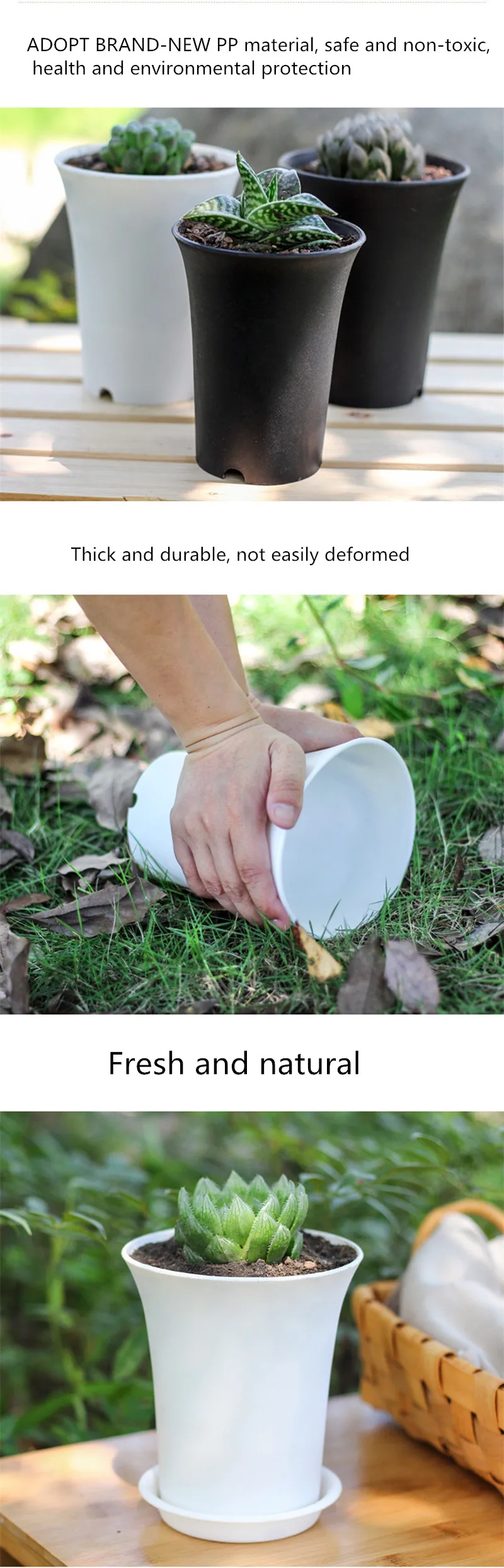 Lavabo de pelo antiguo para plantas suculentas, lavabo Vientiane, maceta de plástico redonda gruesa mate de cintura alta, jardinería en blanco y negro