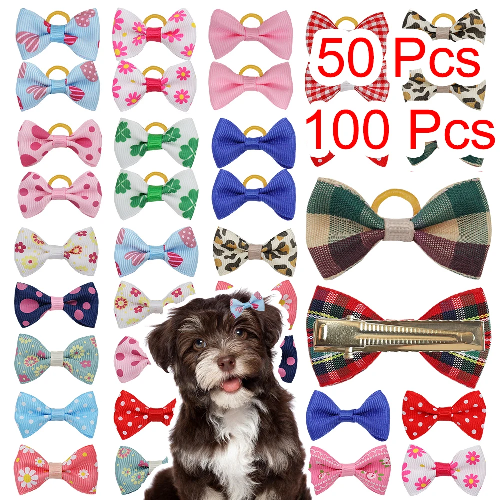 Lazos para el pelo de gato y perro, horquillas de goma para el cuidado del cabello, pinzas decorativas para el pelo, accesorios para perros pequeños, 50/100 piezas