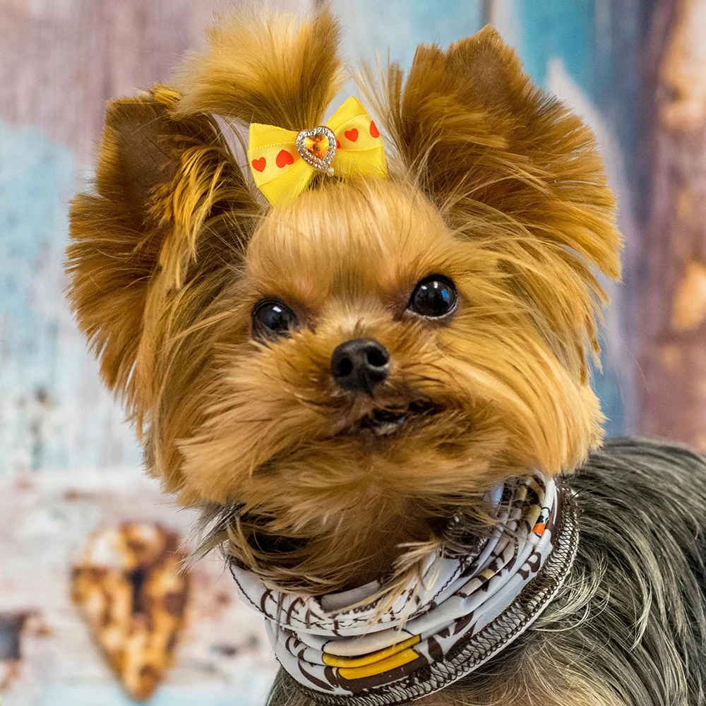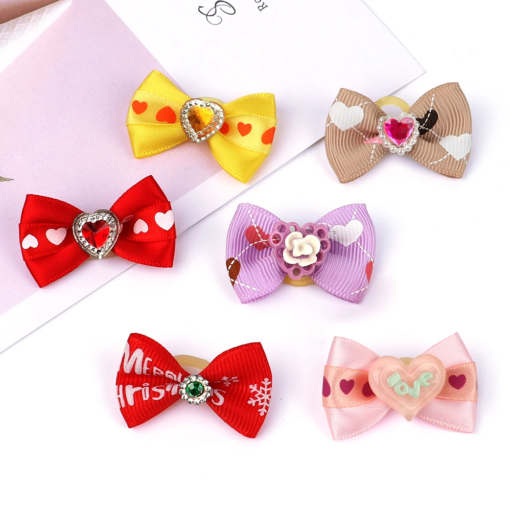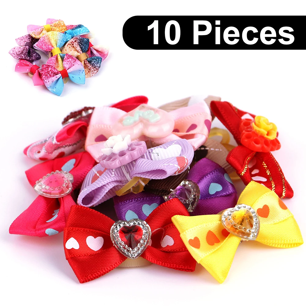 10 Uds./lote bonitos lazos para el pelo de perro, banda de goma, pinzas para el pelo de gato, lazo para el pelo hecho a mano, accesorios para el cuidado de perros y gatos pequeños