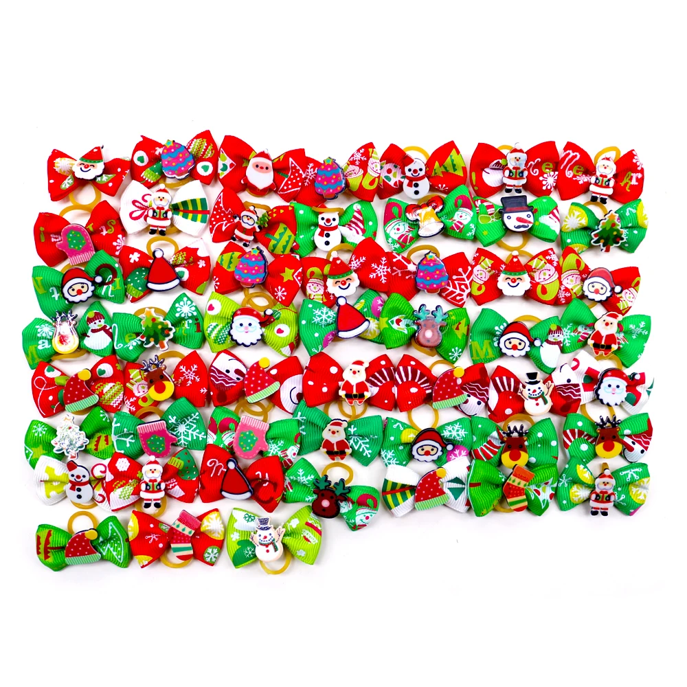 Lazos navideños para el pelo de perros y gatos, accesorios para el cabello, bandas de goma para perros pequeños, accesorios de aseo para mascotas, 50/100 piezas