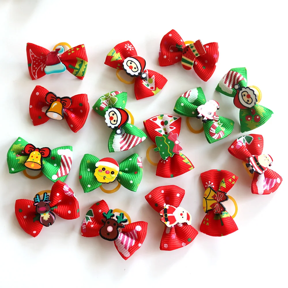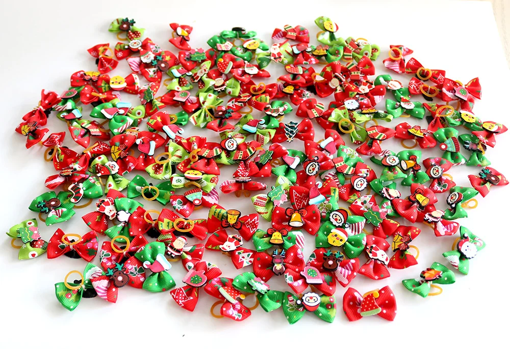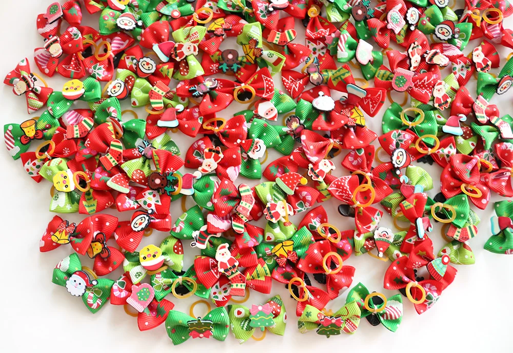 Lazos navideños para perros pequeños, accesorios para el pelo de Navidad, 100 piezas, suministros para mascotas, lazos de goma de Papá Noel para muñeco de nieve