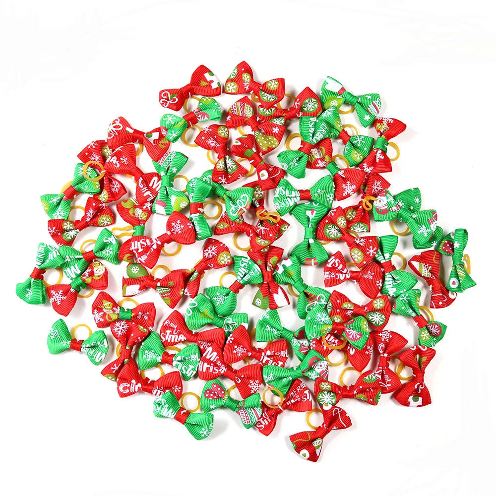 100 Uds. Lazos navideños para perros, lazos para el pelo de mascotas de diamante, accesorios para el cabello de perros pequeños, lazos para el pelo de perros, productos de goma para el cuidado de mascotas