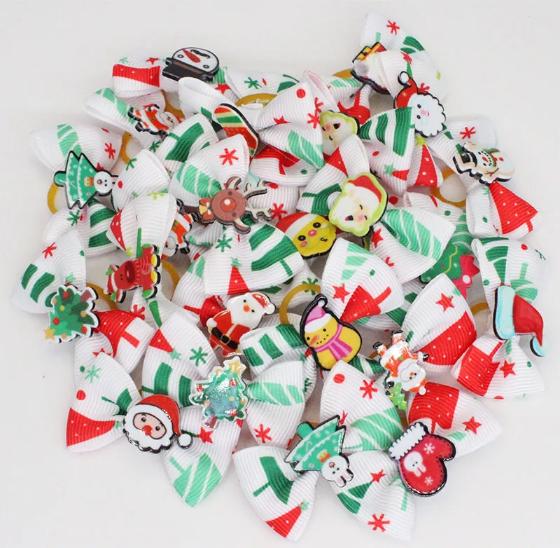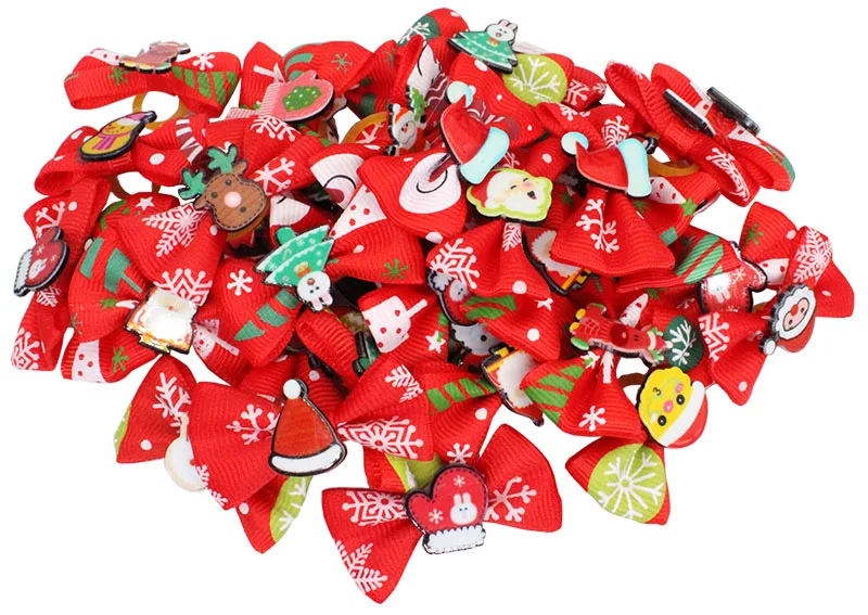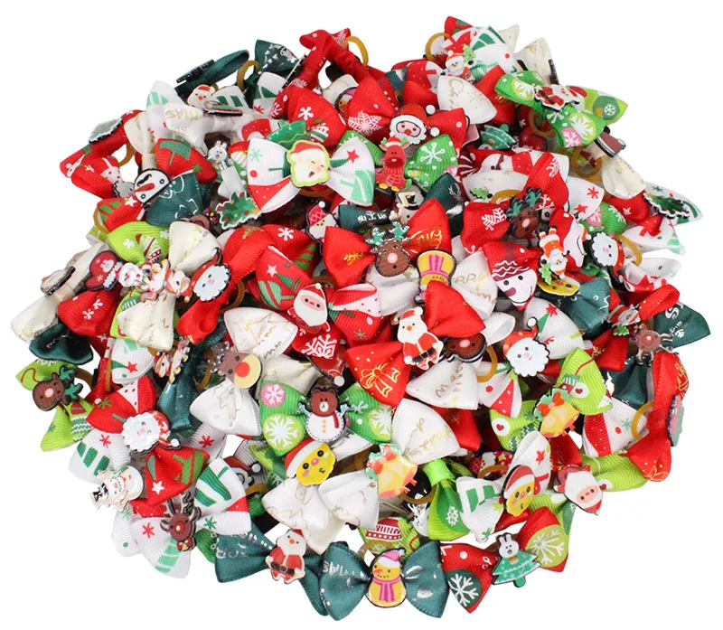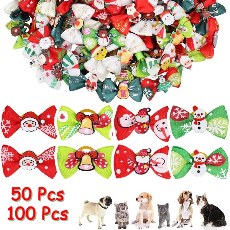 Lazos navideños para perros y gatos, accesorio de goma para el pelo de mascotas, ideal para el cuidado de cachorros y perros pequeños, de 50/100 piezas
