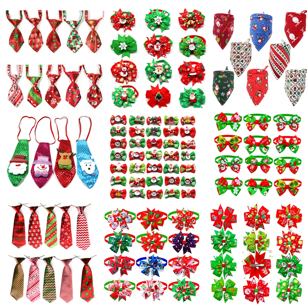 50 productos navideños para mascotas, lazos para perros, gatos, perros, pajarita para mascotas, Bandana para vacaciones, accesorios de aseo para perros pequeños, suministros para perros grandes