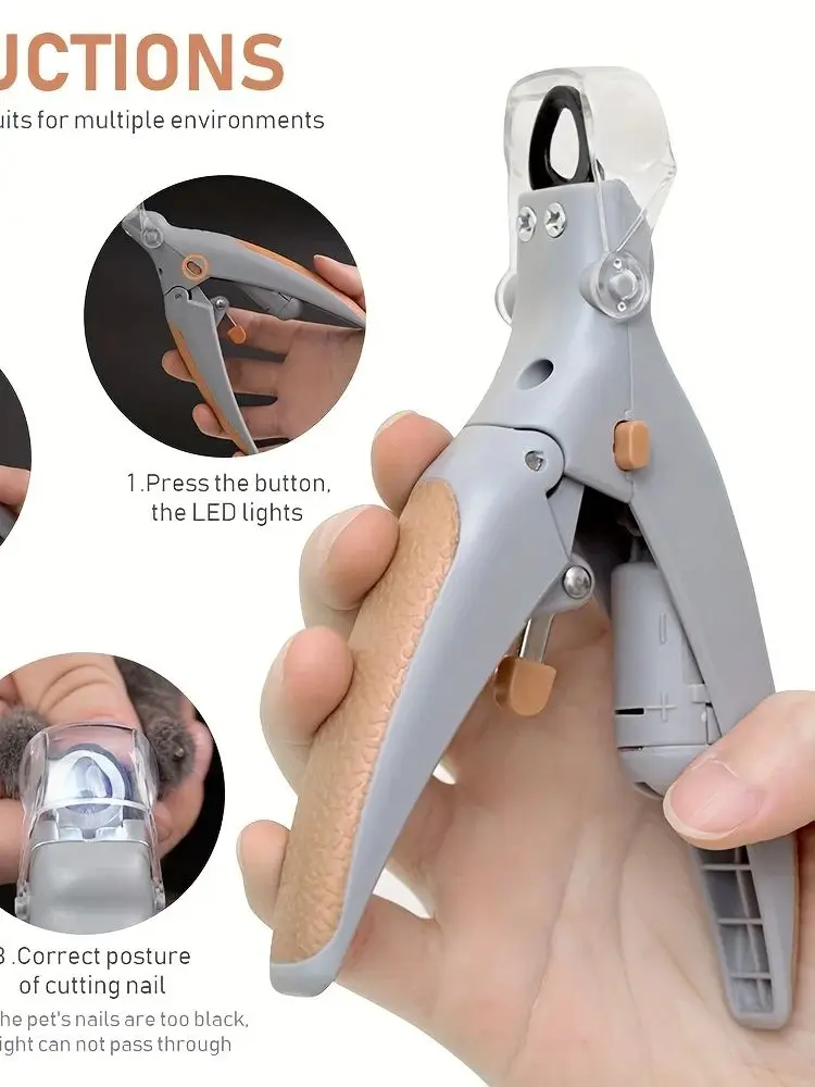 [LED | Cortaúñas para mascotas] 1 cortaúñas LED para perros y gatos | Cuchillas de acero inoxidable, mango de silicona antideslizante y luz LED incorporada