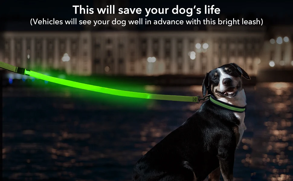 Correa luminosa para perro LED con carga USB.Usted y su perro estarán aún más seguros y visibles.