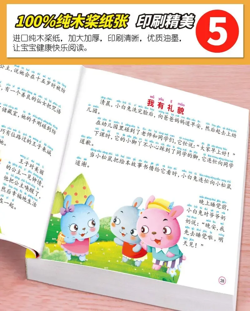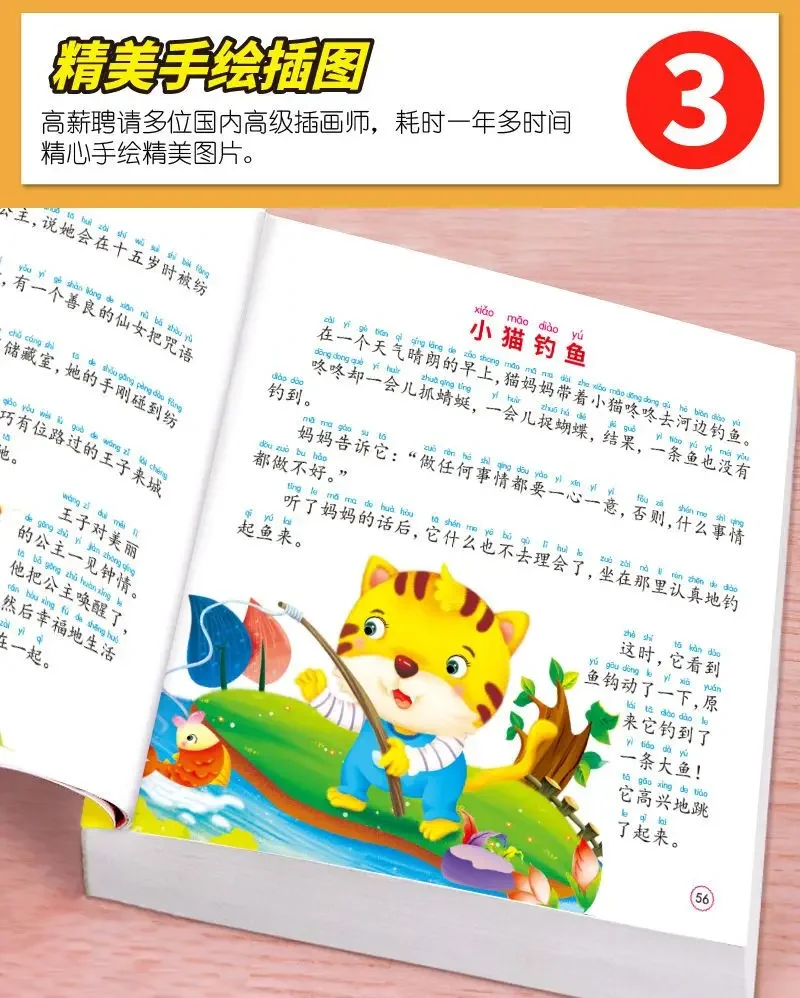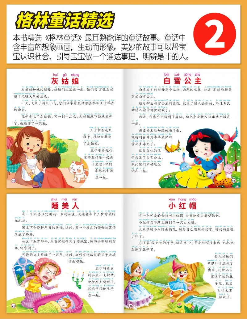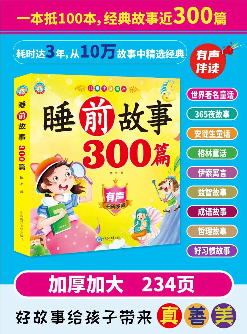 Libro de cuentos de hadas para bebé, versión fonética de personajes grandes, cuentos para dormir, libro para colorear, Educación Temprana, 300