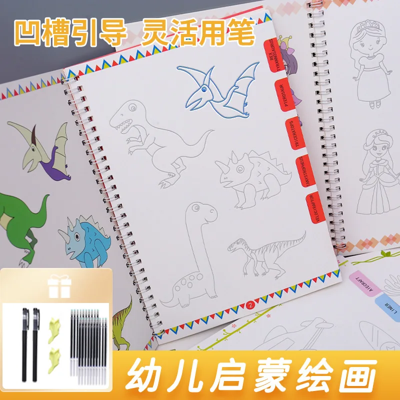 Libro mágico para copiar curioso, libro de práctica de escritura reutilizable con ranura 3D para niños, libros de juguetes educativos Montessori, incluye bolígrafo