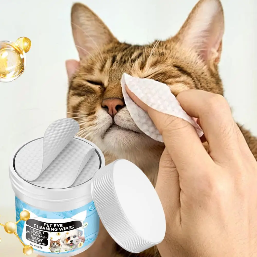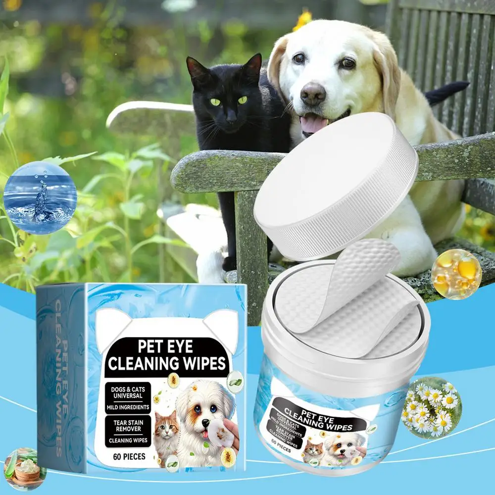 Toallitas limpiadoras suaves para los ojos de perro, 60 unidades limpian eficazmente los ojos y el área de los ojos de las mascotas. Seguro para perros y gatos, Estas toallitas húmedas son la solución perfecta para mantener limpios los ojos de su mascota. La fórmula segura y eficaz facilita la limpieza de la suciedad y los escombros.