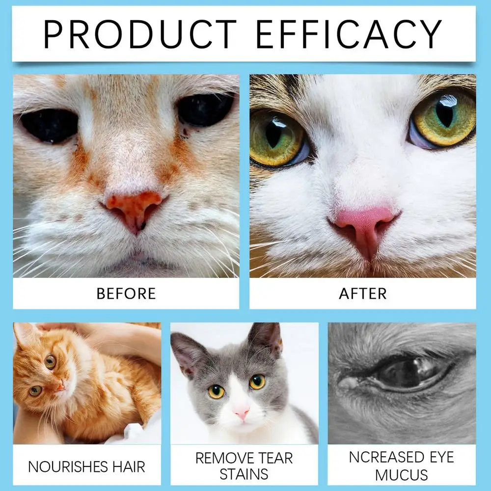 3.Reduce el comportamiento de rascado de las mascotas: experimenta una reducción en el comportamiento de rascado de las mascotas con nuestro eliminador de manchas de lágrimas para perros. Promueve eficazmente la comodidad al tiempo que aborda las molestias oculares, asegurando el bienestar general de la mascota.