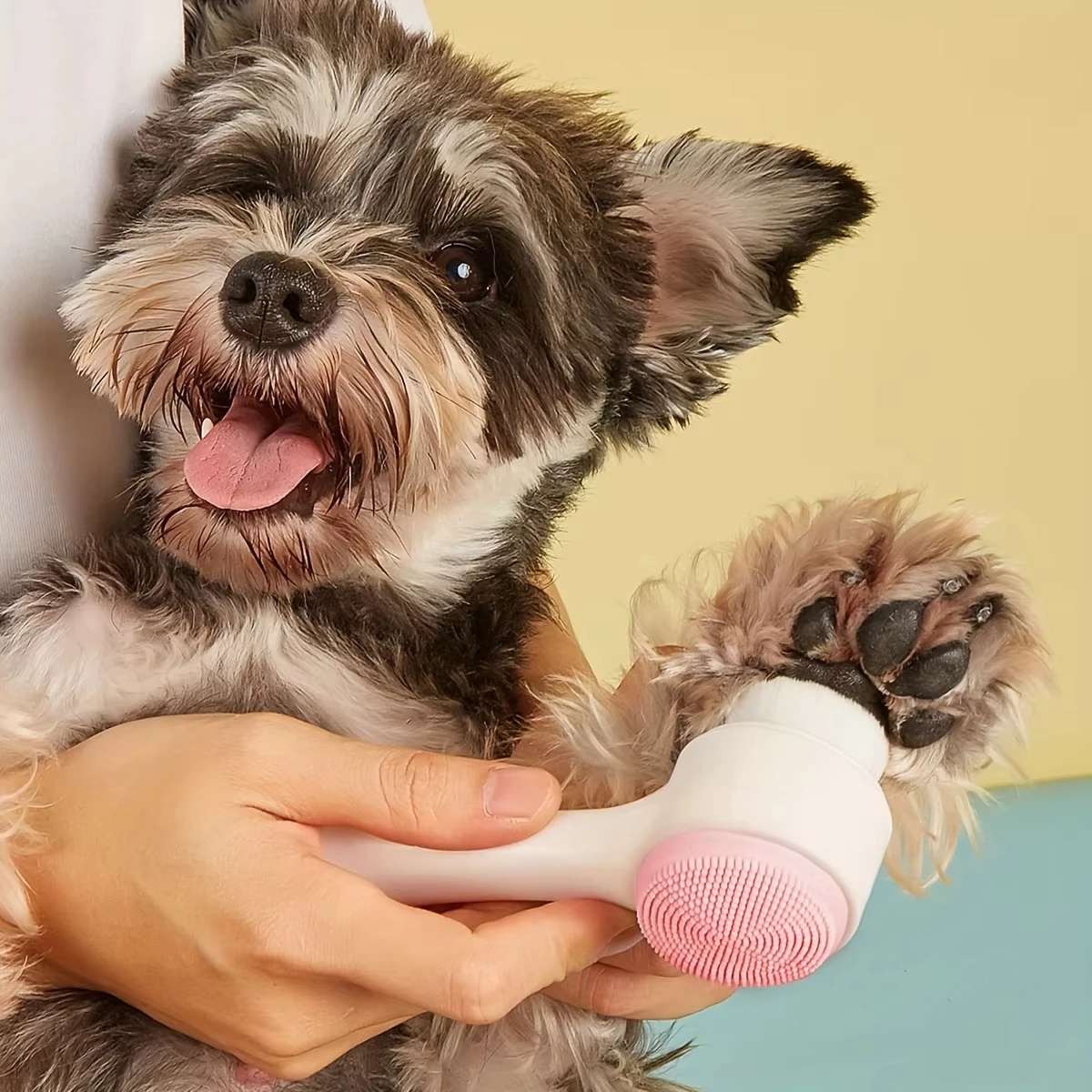 Limpiador de patas de mascotas de silicona y cepillo de masaje: herramientas de aseo para perros de doble cara para abrigos y garras saludables