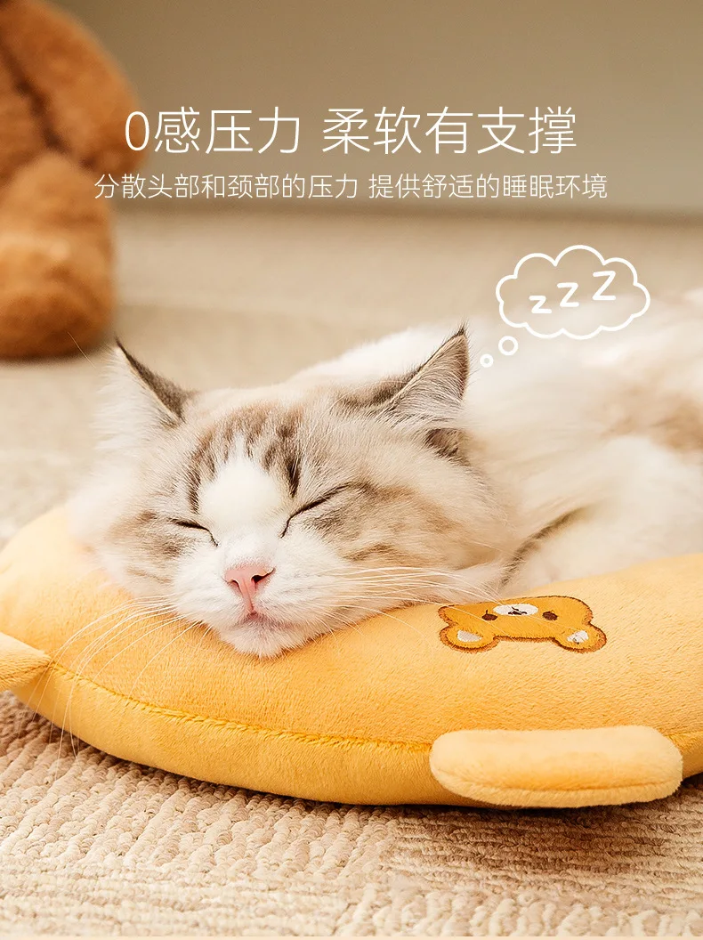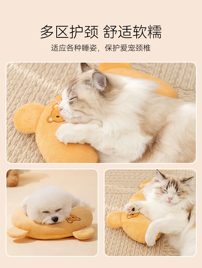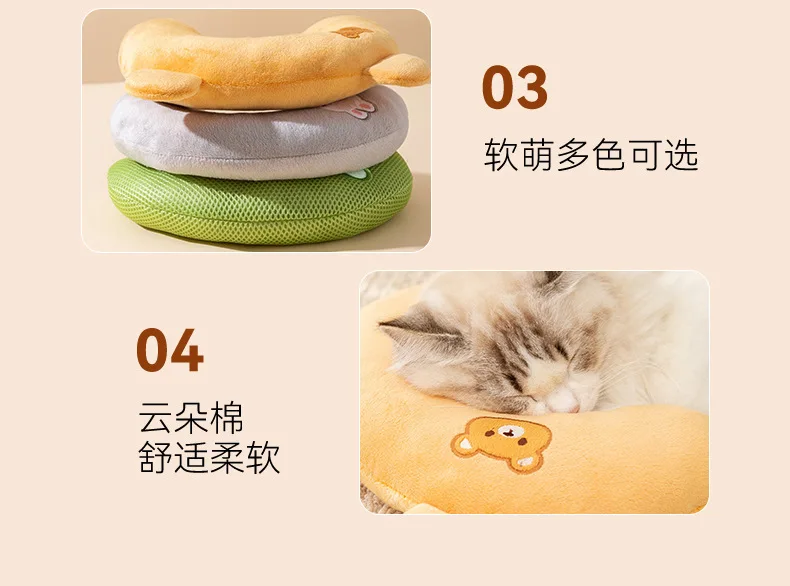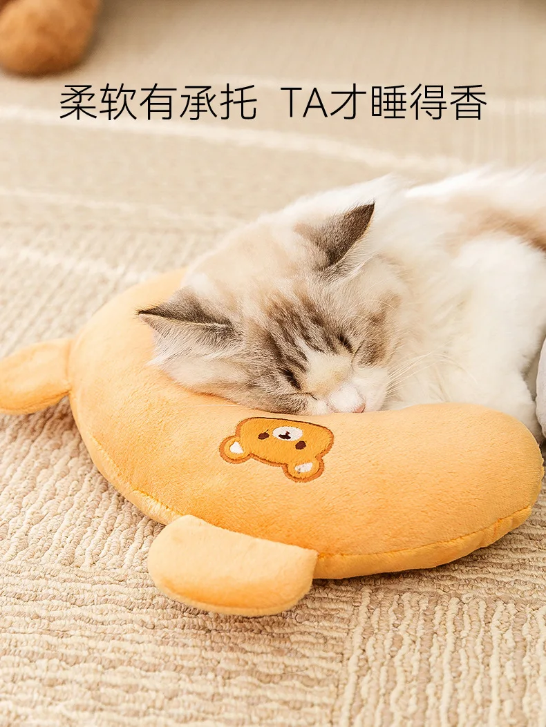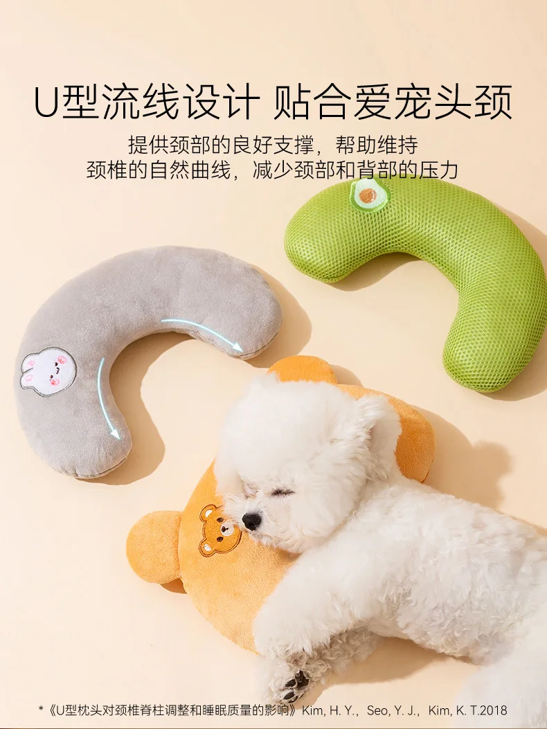 Linda mascota para todas las estaciones, almohada Universal transpirable con dibujos animados bordados en forma de U, almohada para dormir para gatos, ropa de cama para perros, accesorios para mascotas