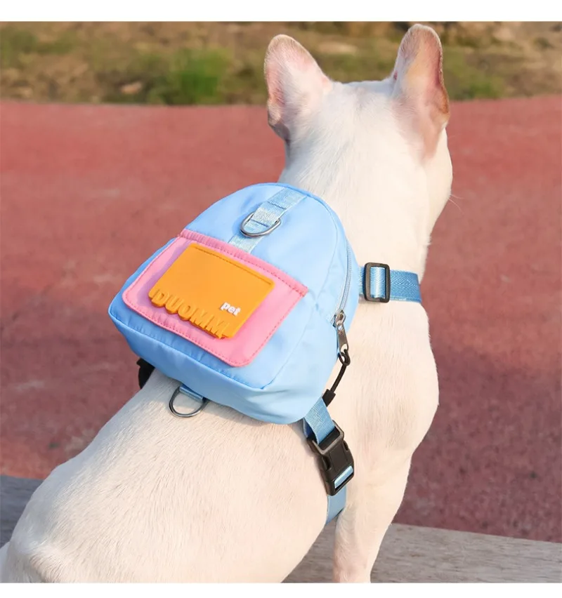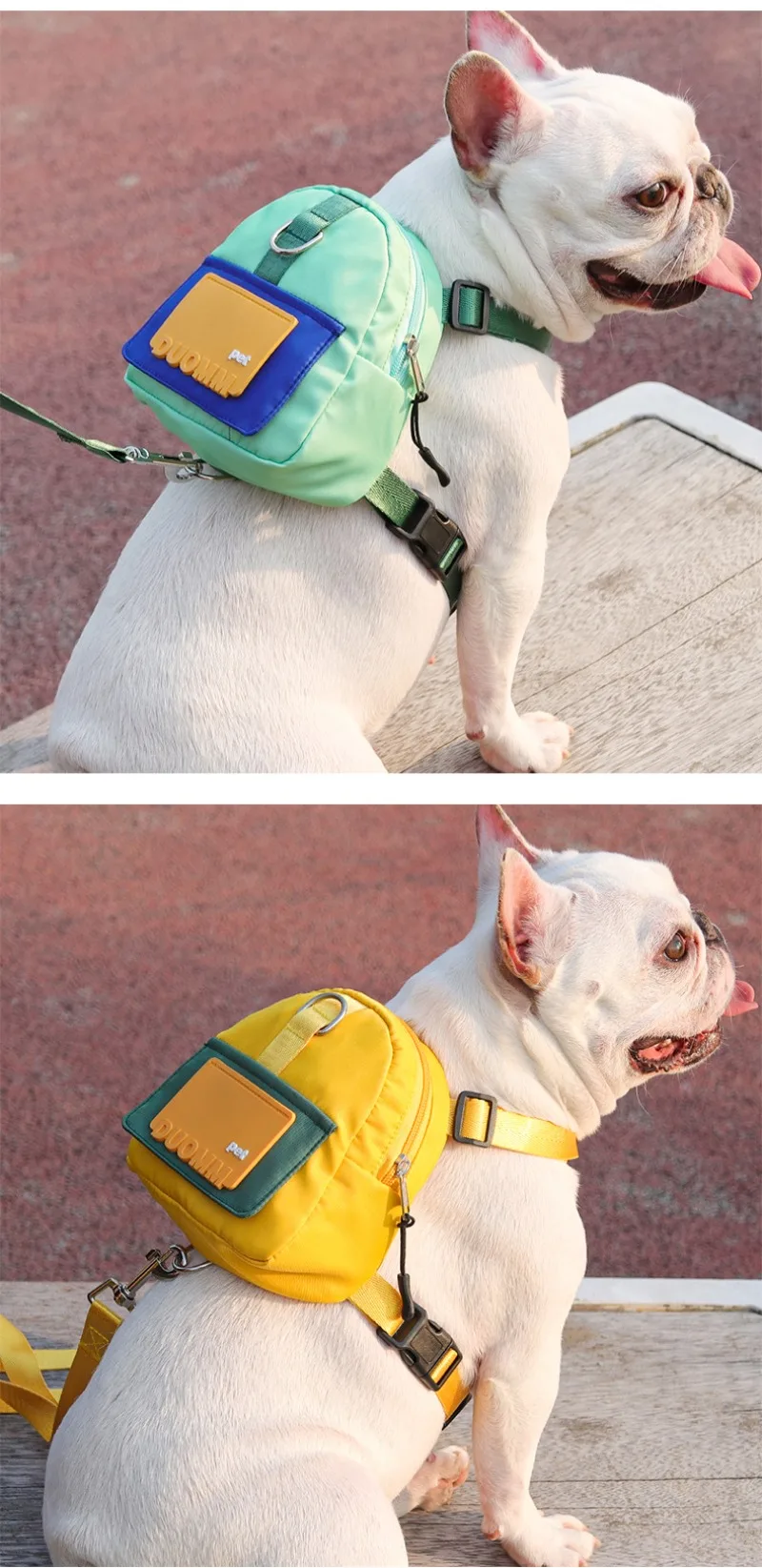 Linda mochila ajustable para mascotas con correas de arnés, bolsa portátil para entrenamiento de perros para viajes al aire libre, bolsas de almacenamiento para aperitivos para cachorros y mascotas