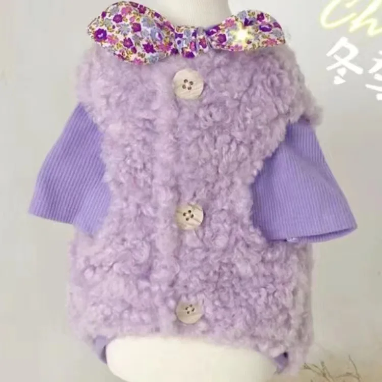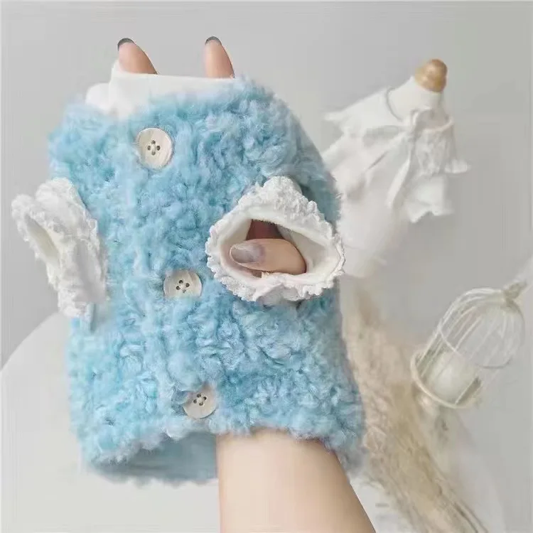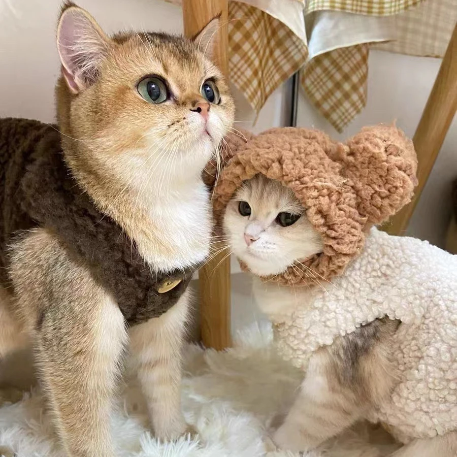Lindo abrigo de lana de cordero para mascotas, abrigo de lana de otoño/invierno con osito, abrigo cálido de invierno para perros de peluche, ropa de invierno para gatos para perros pequeños