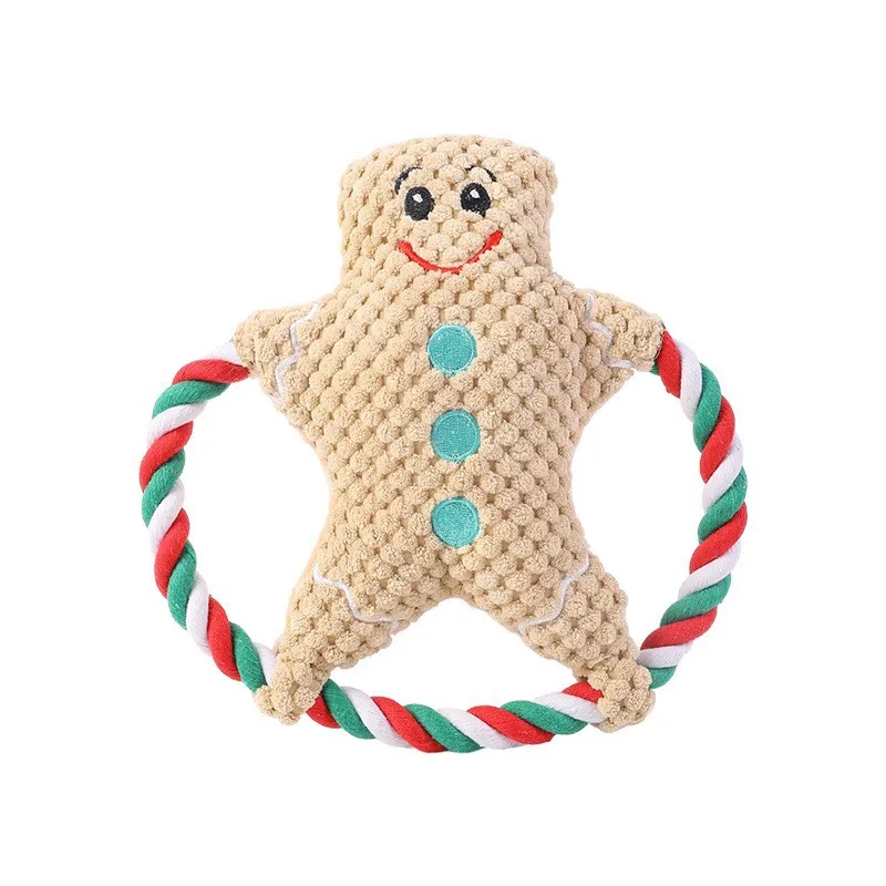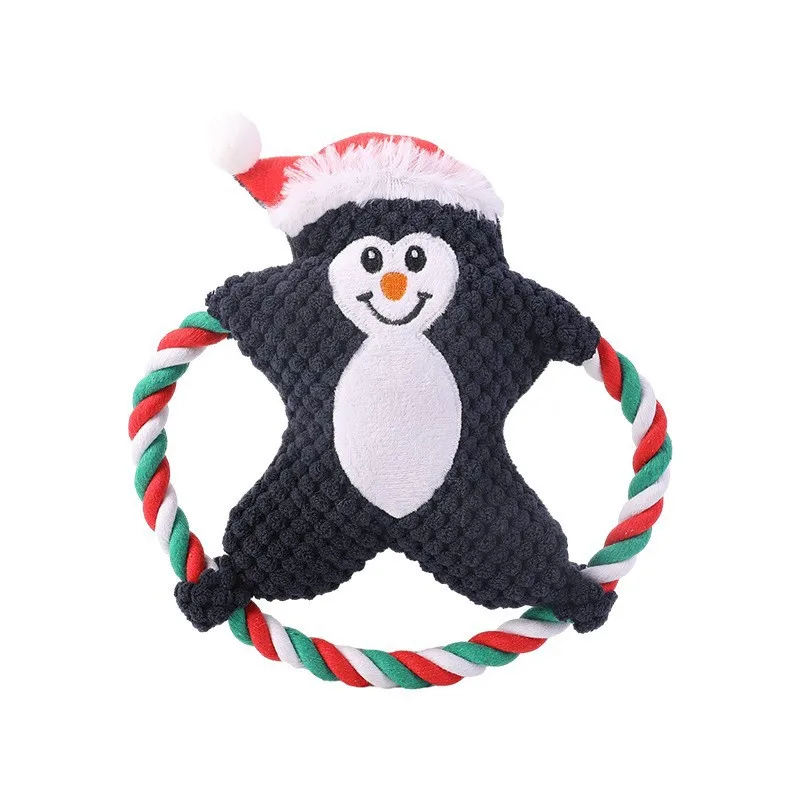 Lindo Animal Frisbee cuerda perro juguete lindo cachorro de peluche masticar mascota chirrido nudo juguete dibujos animados Navidad
