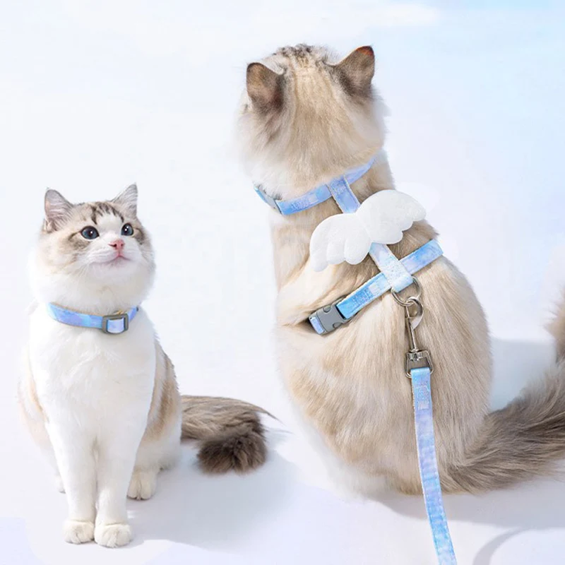Lindo arnés de gato conjunto de correa con alas correas ajustables para el pecho para mascotas para gatos conejo cachorro gatito suministros para caminar al aire libre