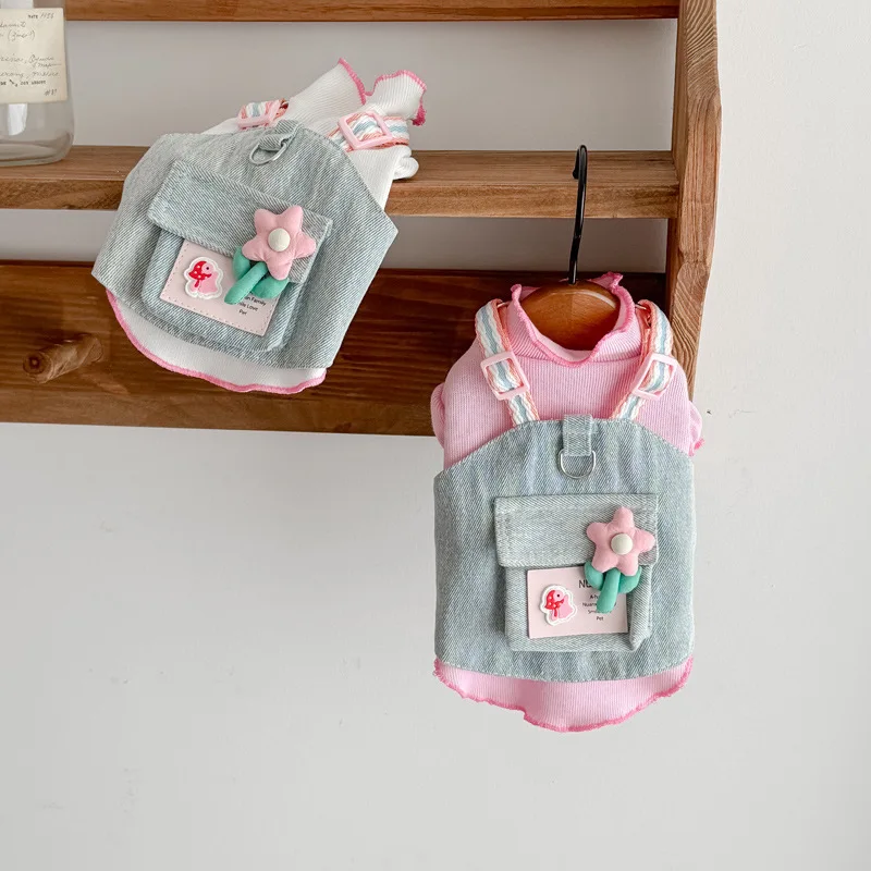 Lindo chaleco vaquero para perros de otoño, conjunto de vestido con correa para perros pequeños, Chihuahua, cachorro Bichon caniche, ropa para exteriores