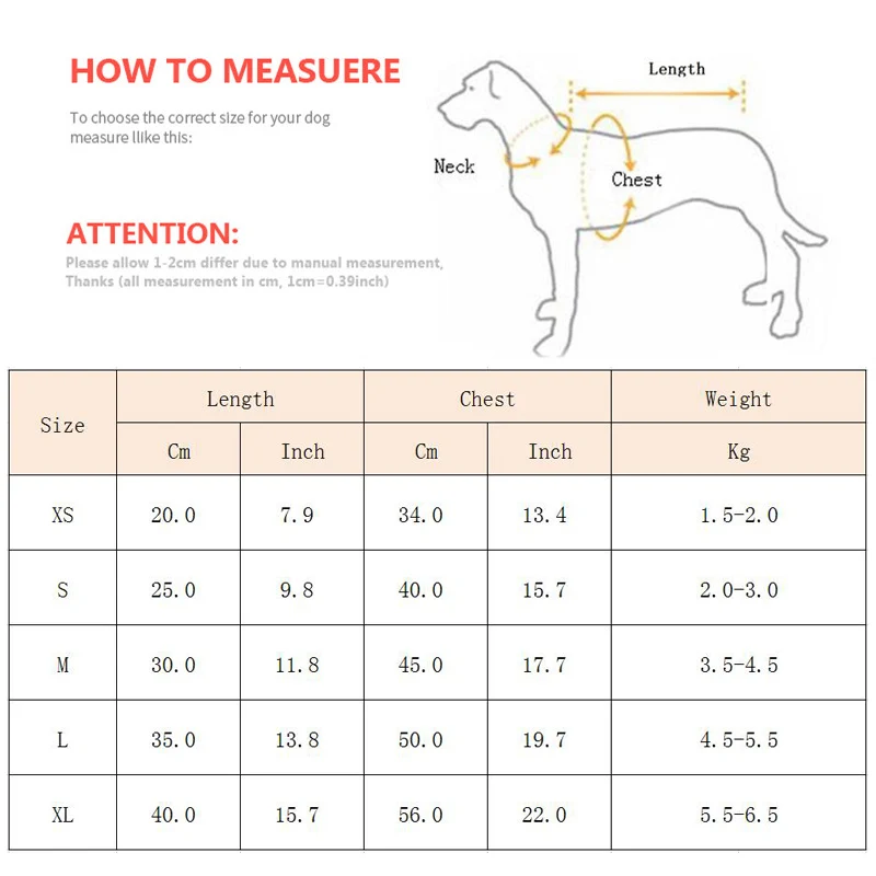1. Por favor, compruebe las medidas de su mascota para asegurarse de que la ropa se ajuste a las mascotas antes de realizar el pedido (1 pulgada=2,54 cm)