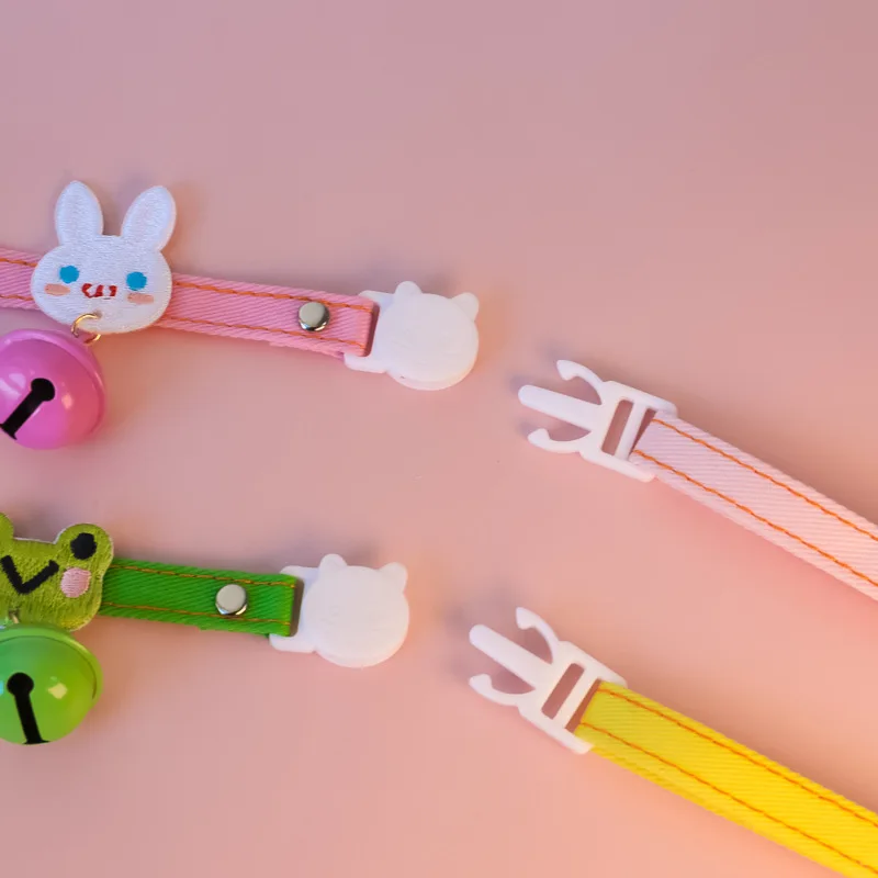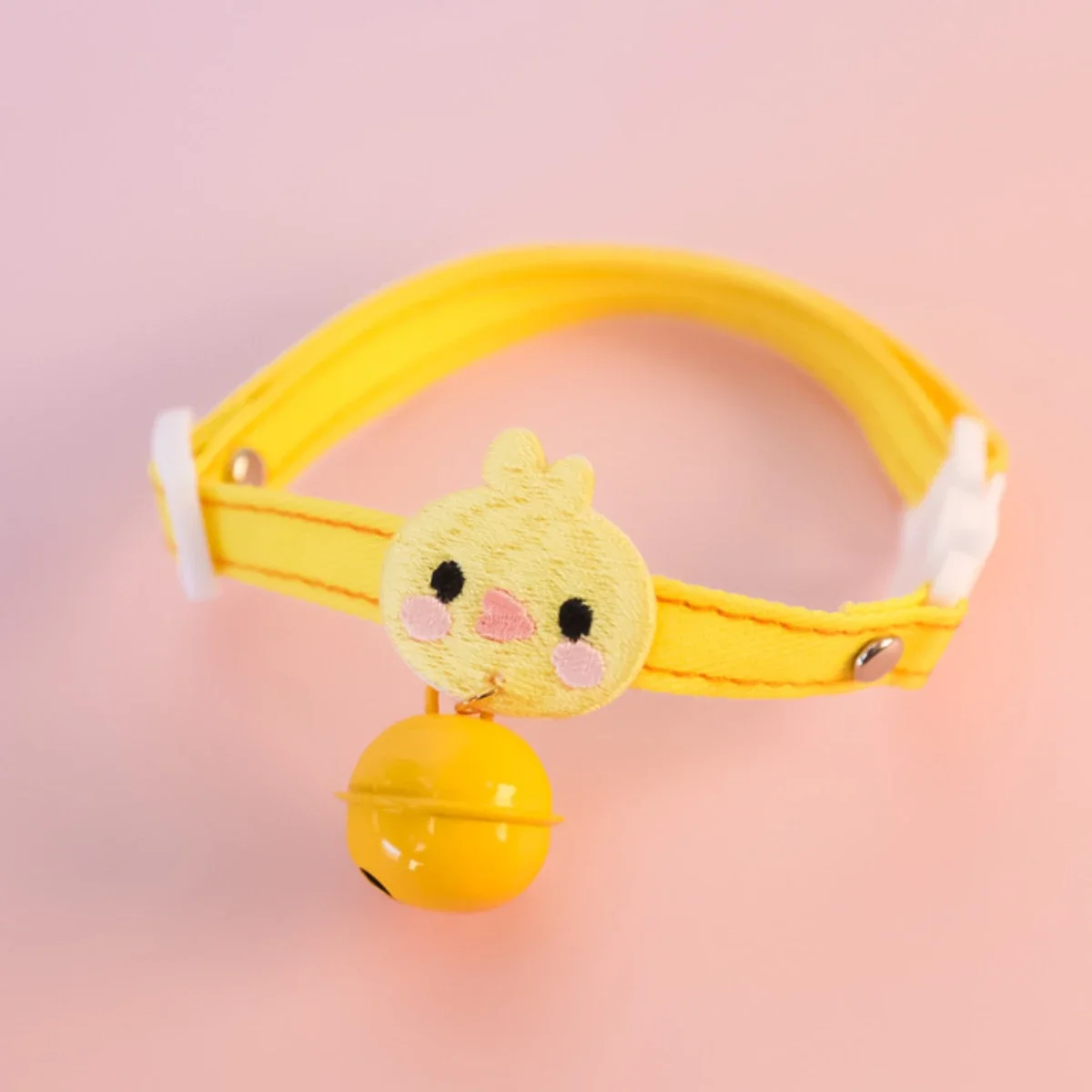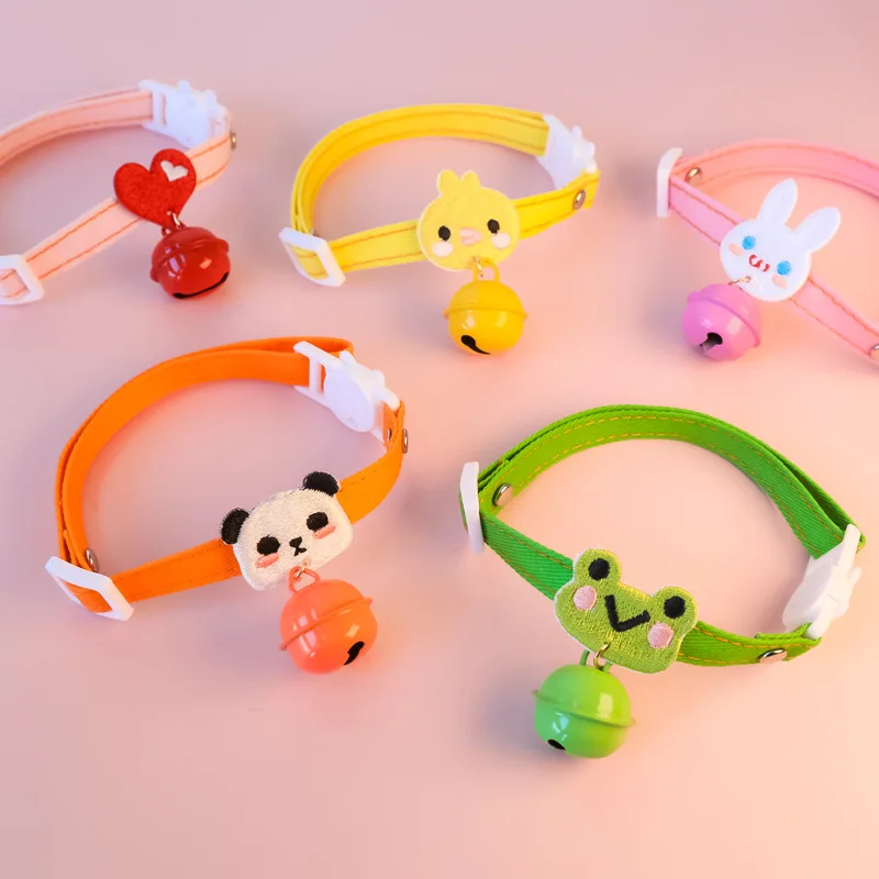 Lindo collar de gato de dibujos animados con campana, collar de gatito ajustable para niñas y niños, divertidos accesorios para mascotas para gatos y perros pequeños