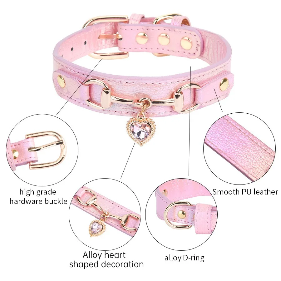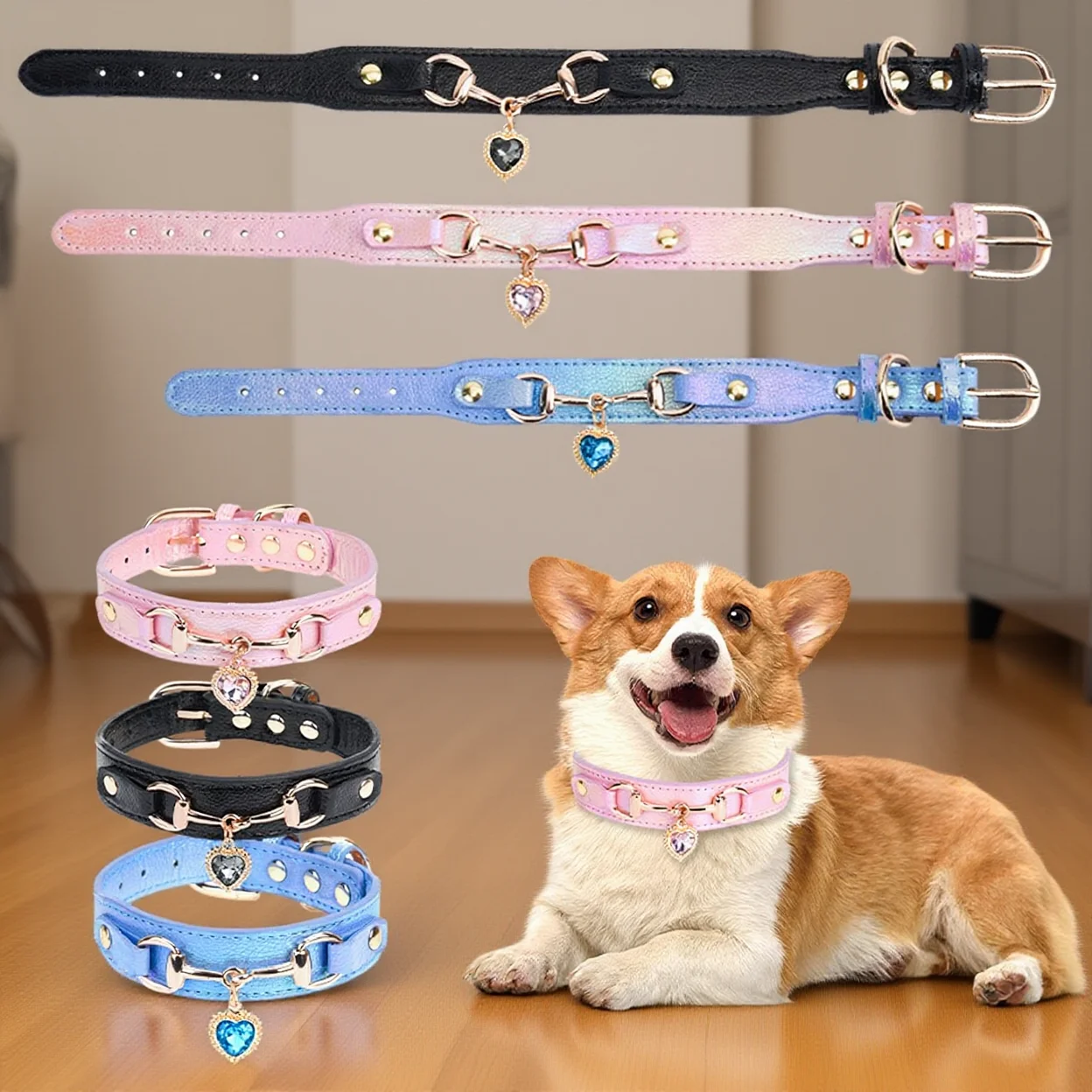 Lindo collar para mascotas con diamantes de imitación en forma de corazón: cuero PU con herrajes metálicos, banda para el cuello ajustable para perros y gatos pequeños y medianos,
