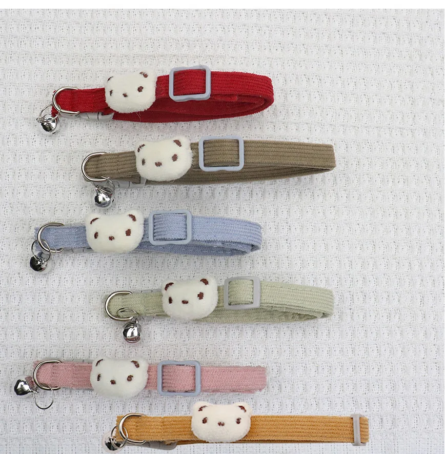 Nuevo Collar de pana para mascotas con diseño de mini oso, Collar ajustable para perro pequeño, gato, cachorro, gatito con campana, ancho de 1,0 cm