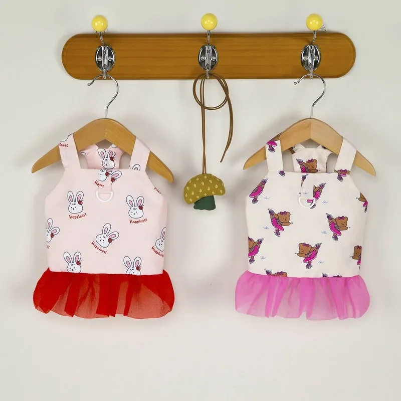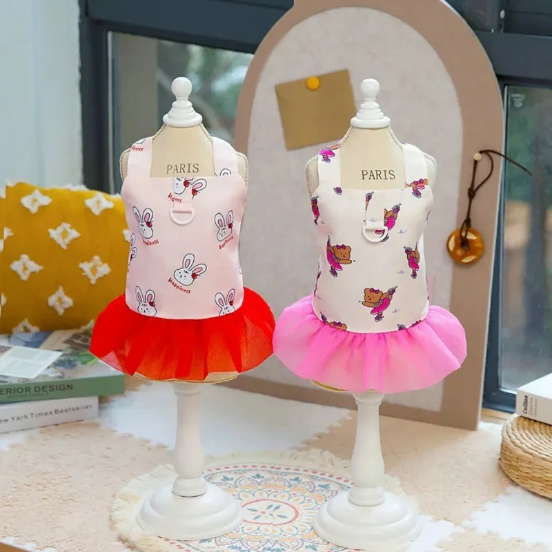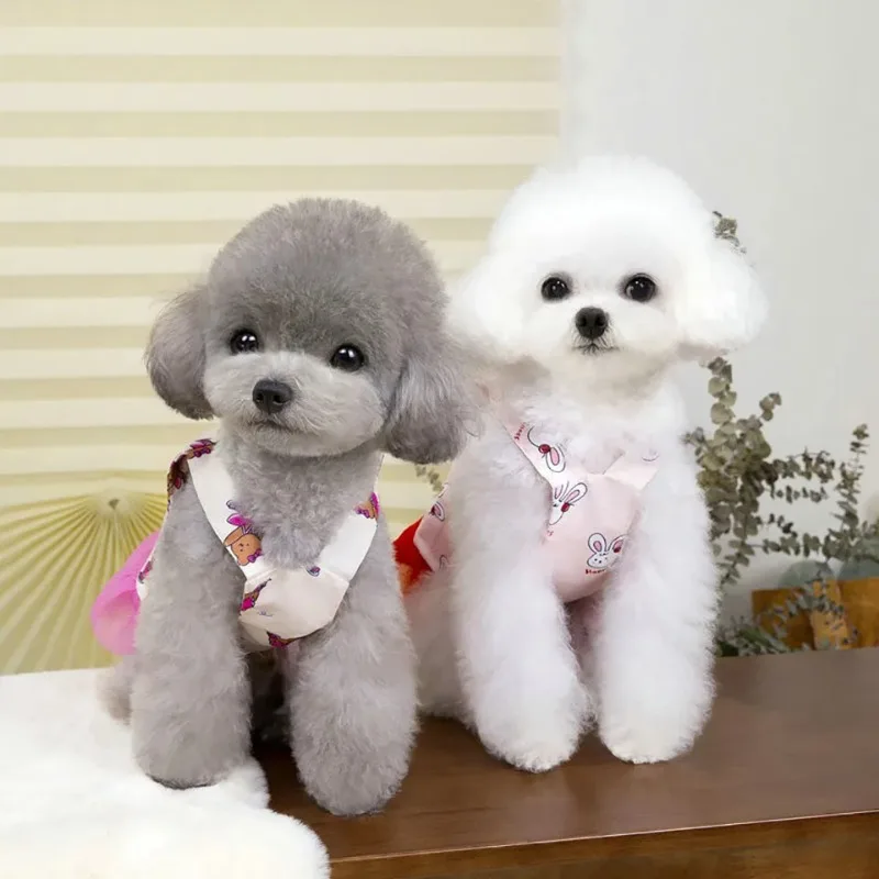 Lindo conejo mascota Halter falda de malla novedad de verano ropa para perros Teddy conejo vestido estampado perro pequeño vestido de dibujos animados ropa para perros femeninos