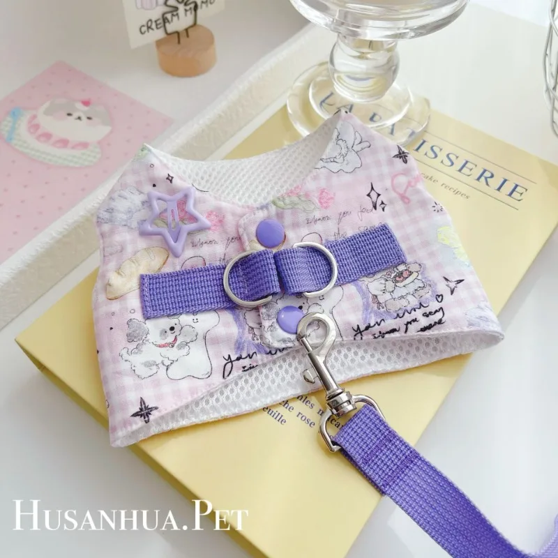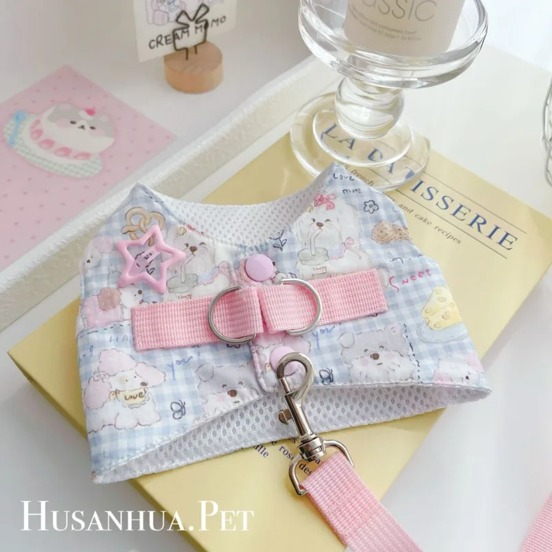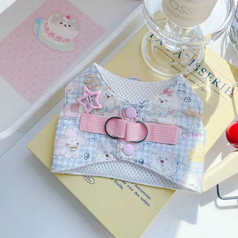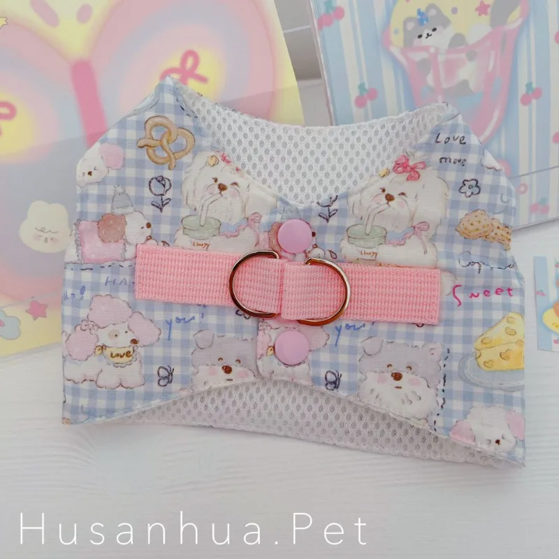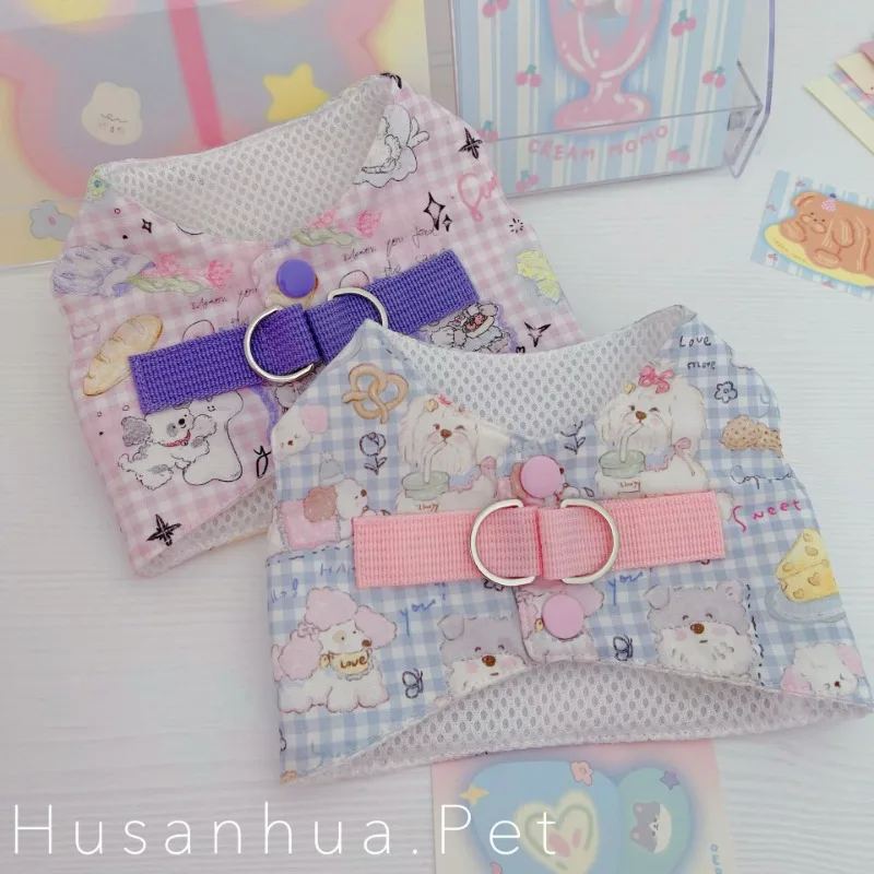 Lindo conjunto de arnés para perros, ropa para perros, chaleco vaquero de color caramelo para perros, juguetón, lindo perro pequeño, dobladillo con borla, Chihuahua, peluche de verano