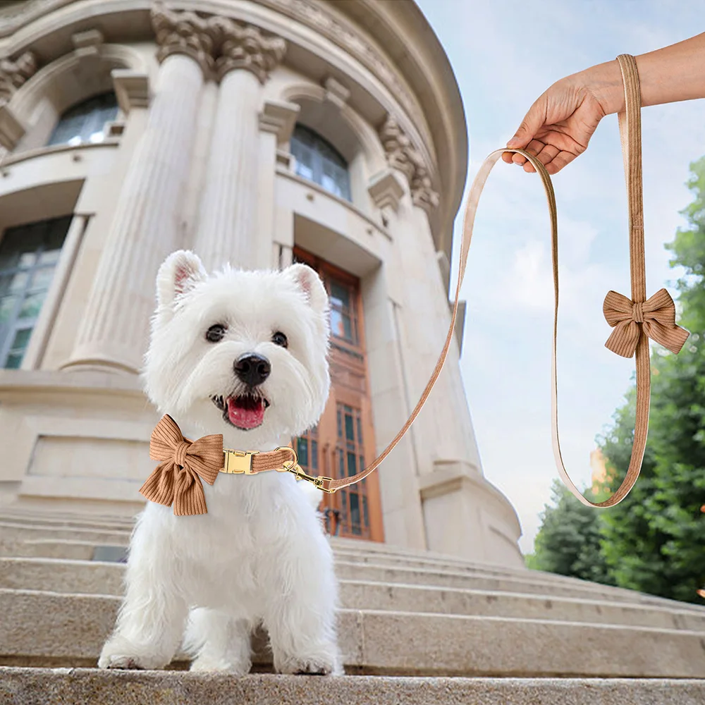Lindo juego de correa para Collar de perro rosa con pajarita, collares y correa ajustables de terciopelo suave para mascotas, accesorios para perros pequeños y medianos