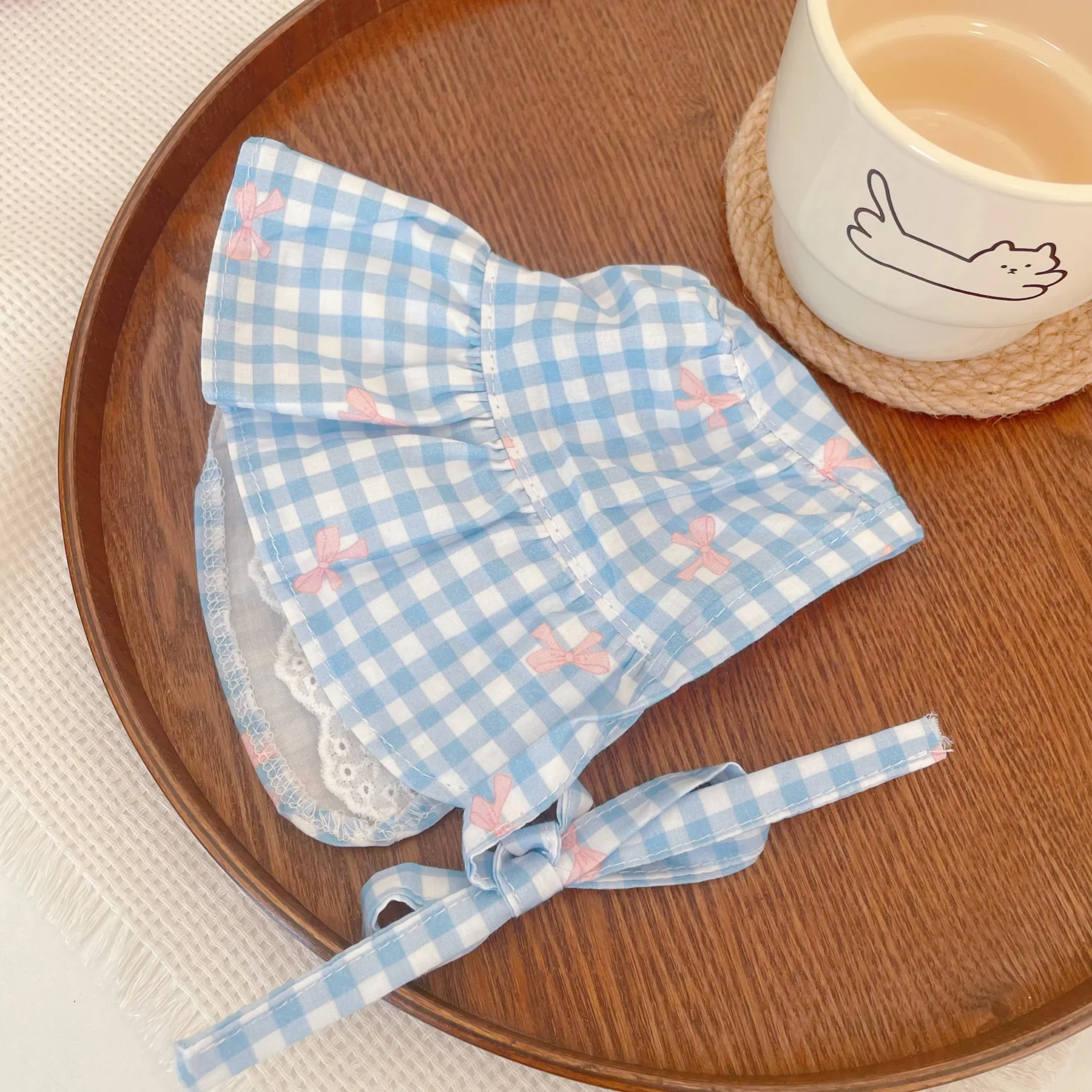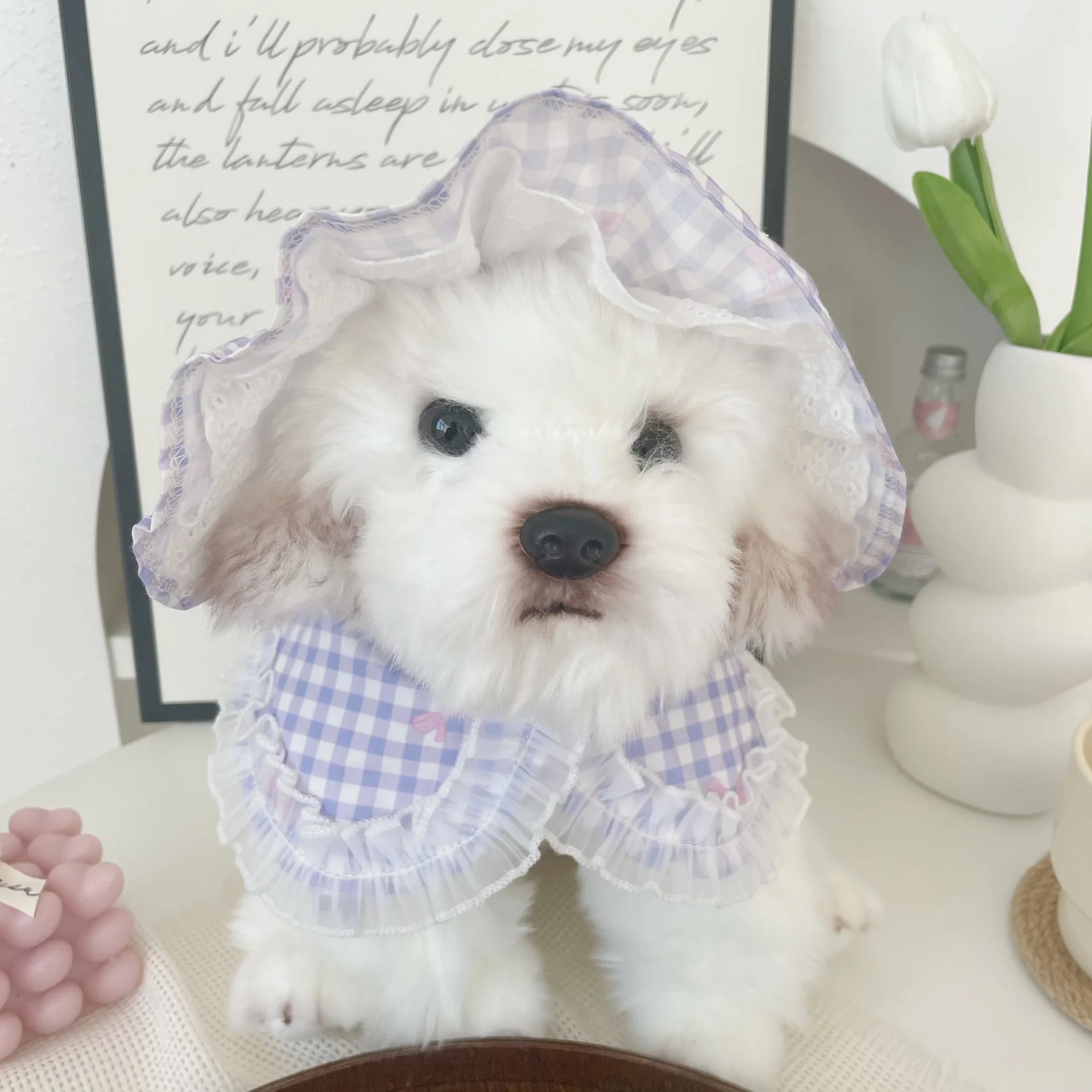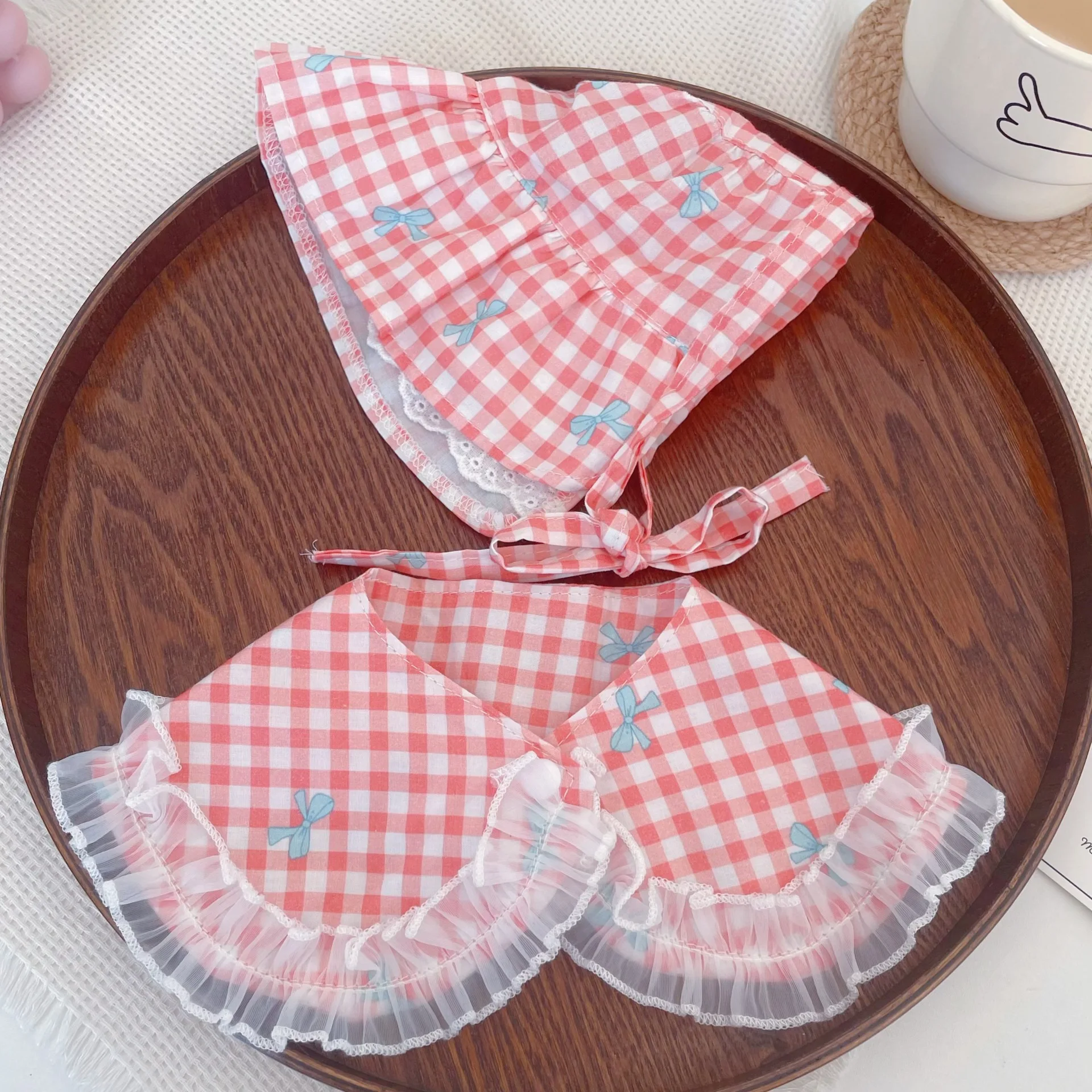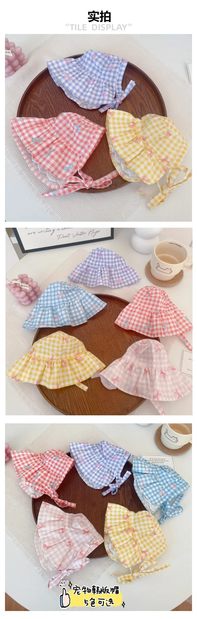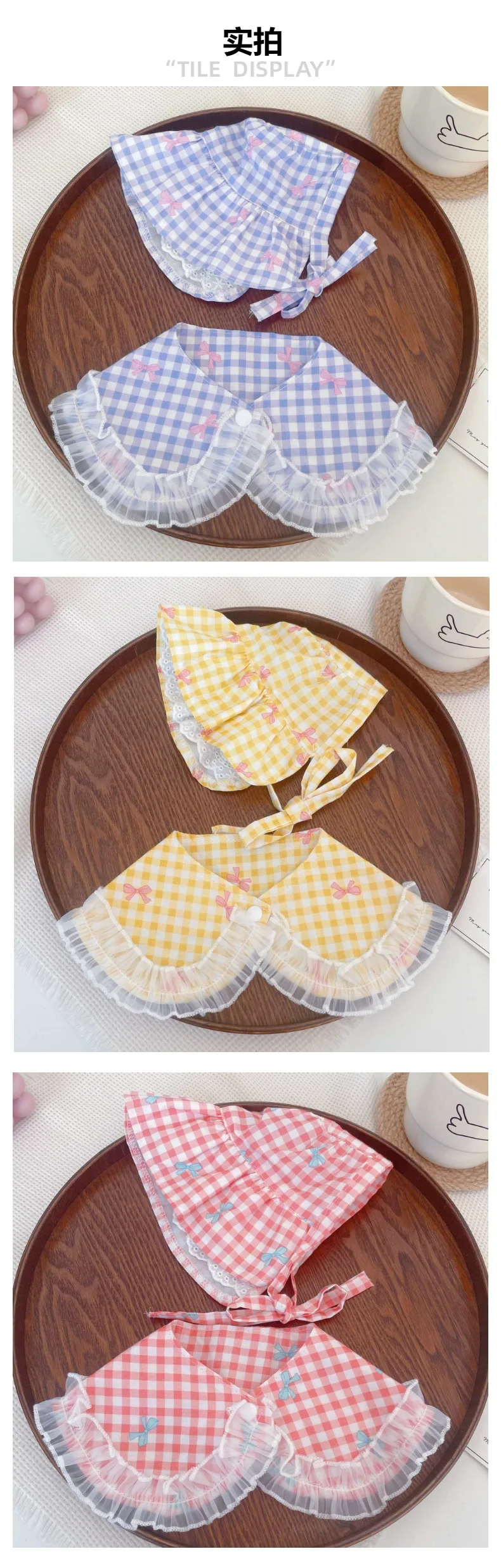 Lindo conjunto de sombrero y Collar para mascotas, sombrero a cuadros para perro/gato con Collar de encaje, adorables accesorios para sombreros de cachorro y gatito para fotos