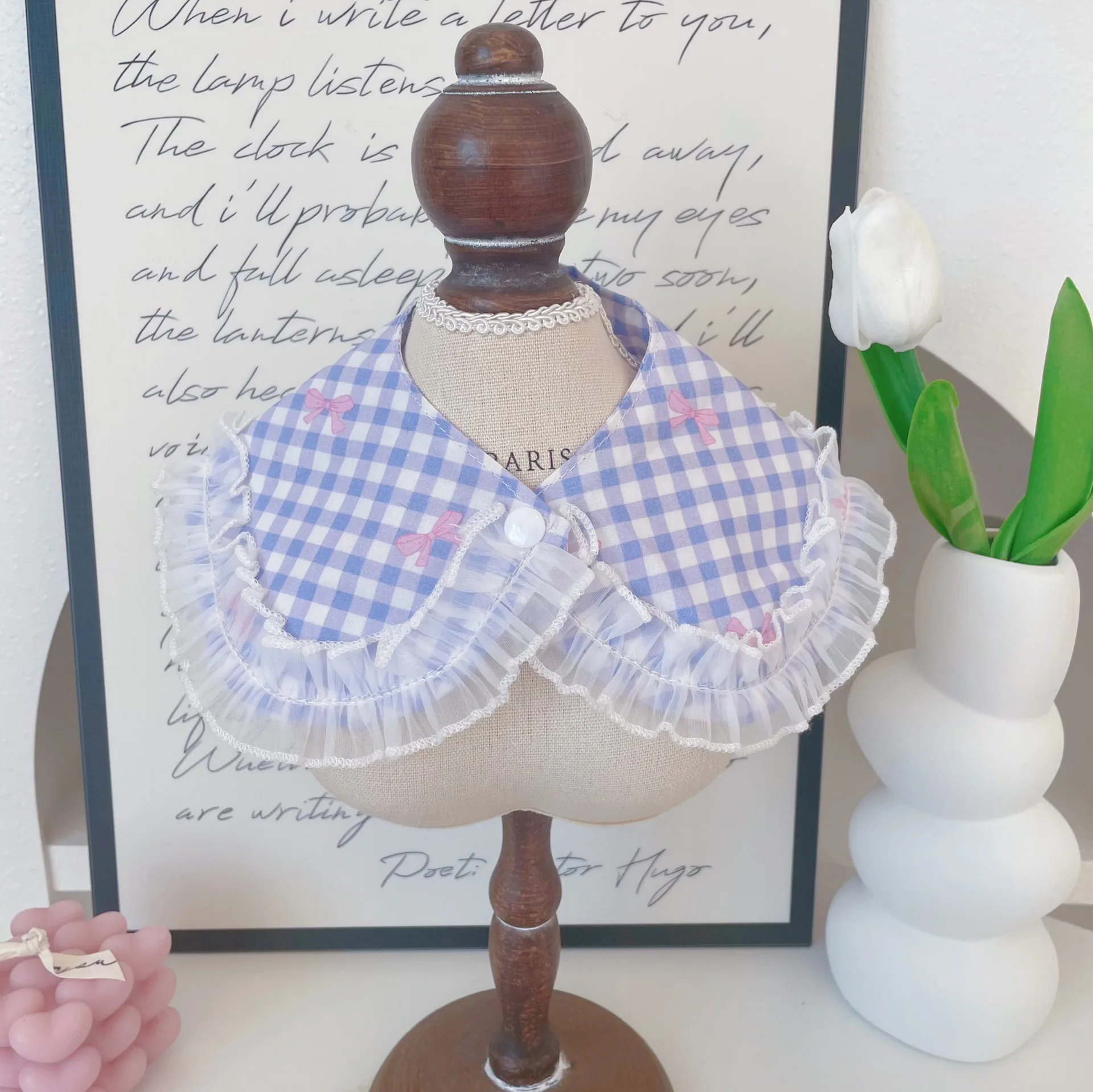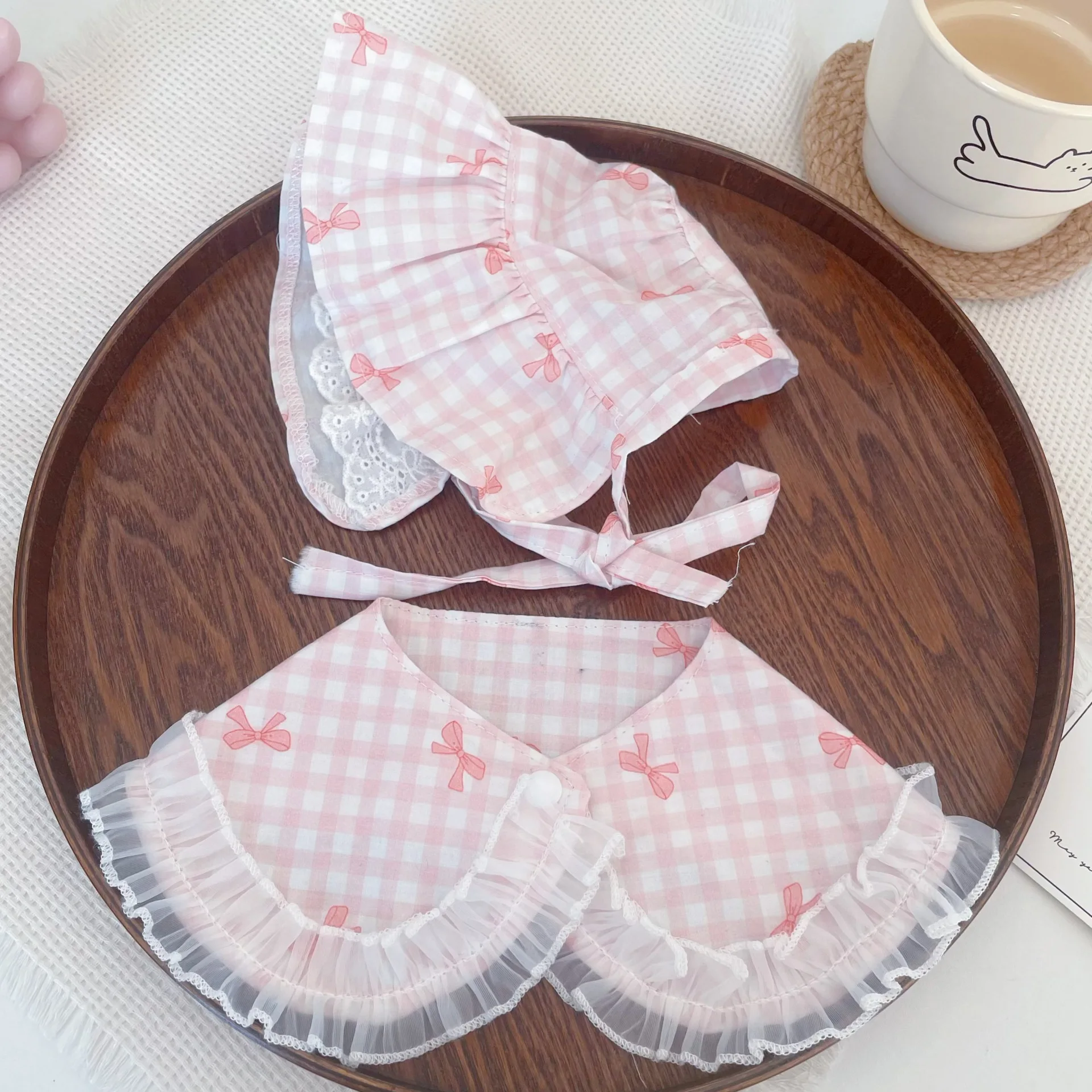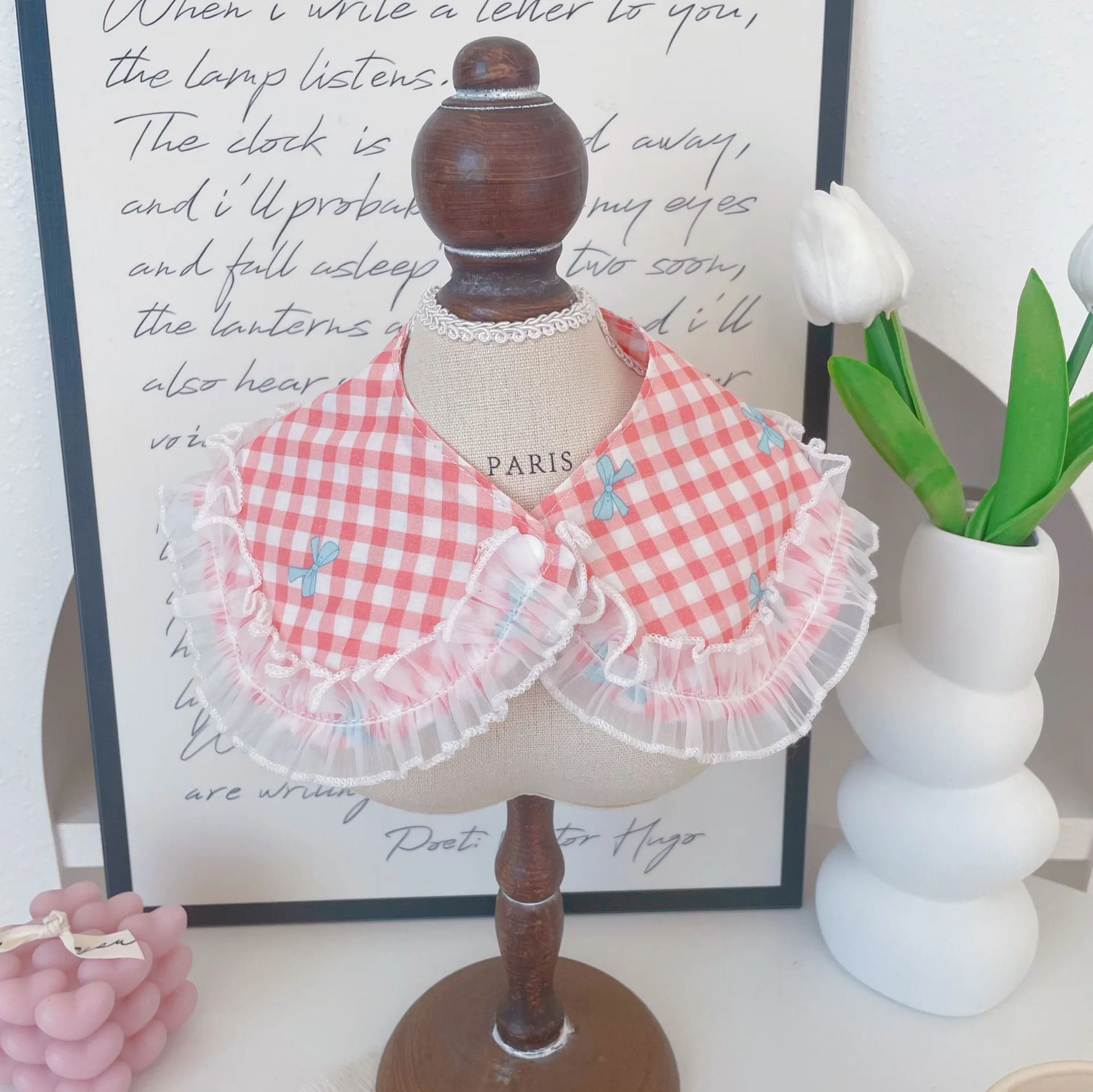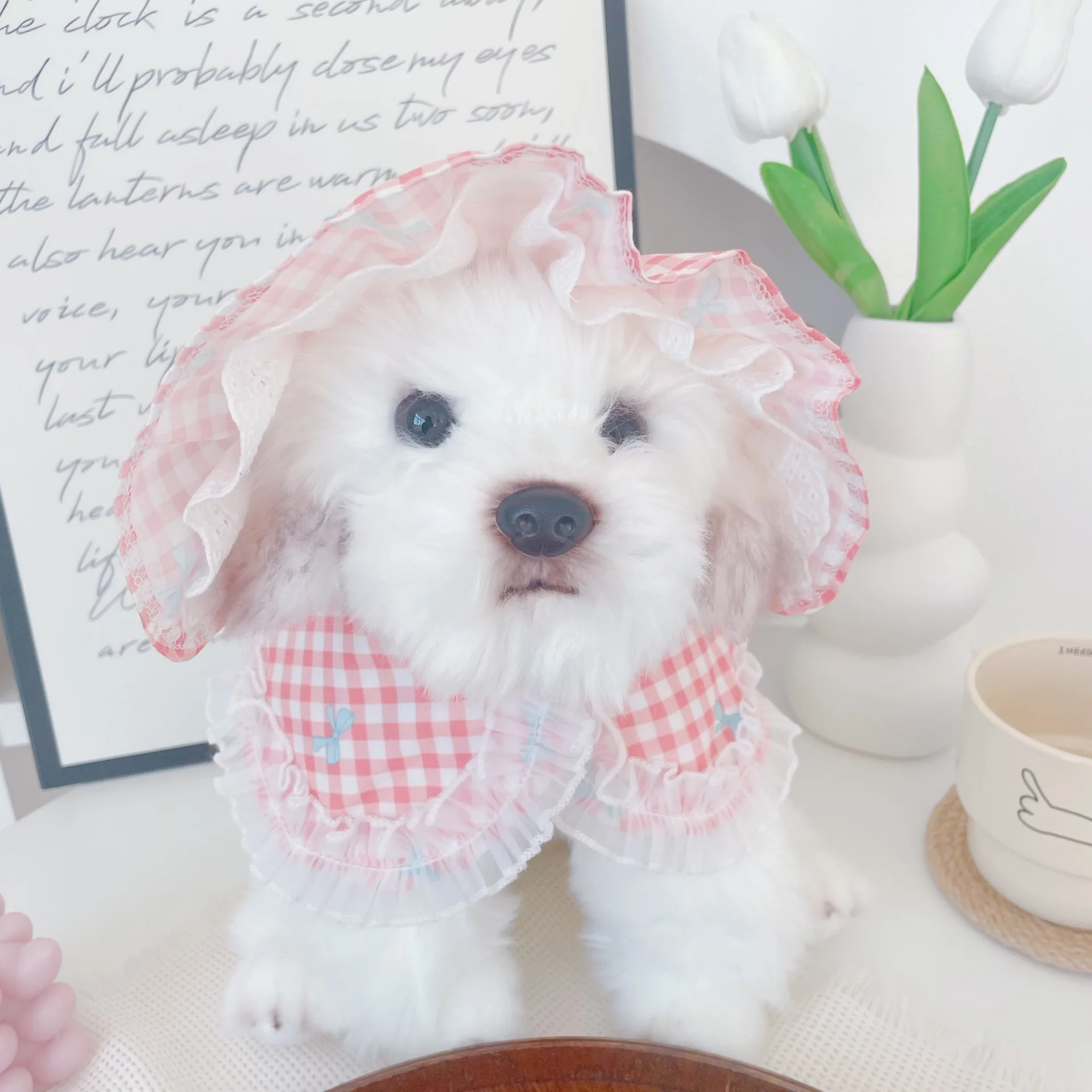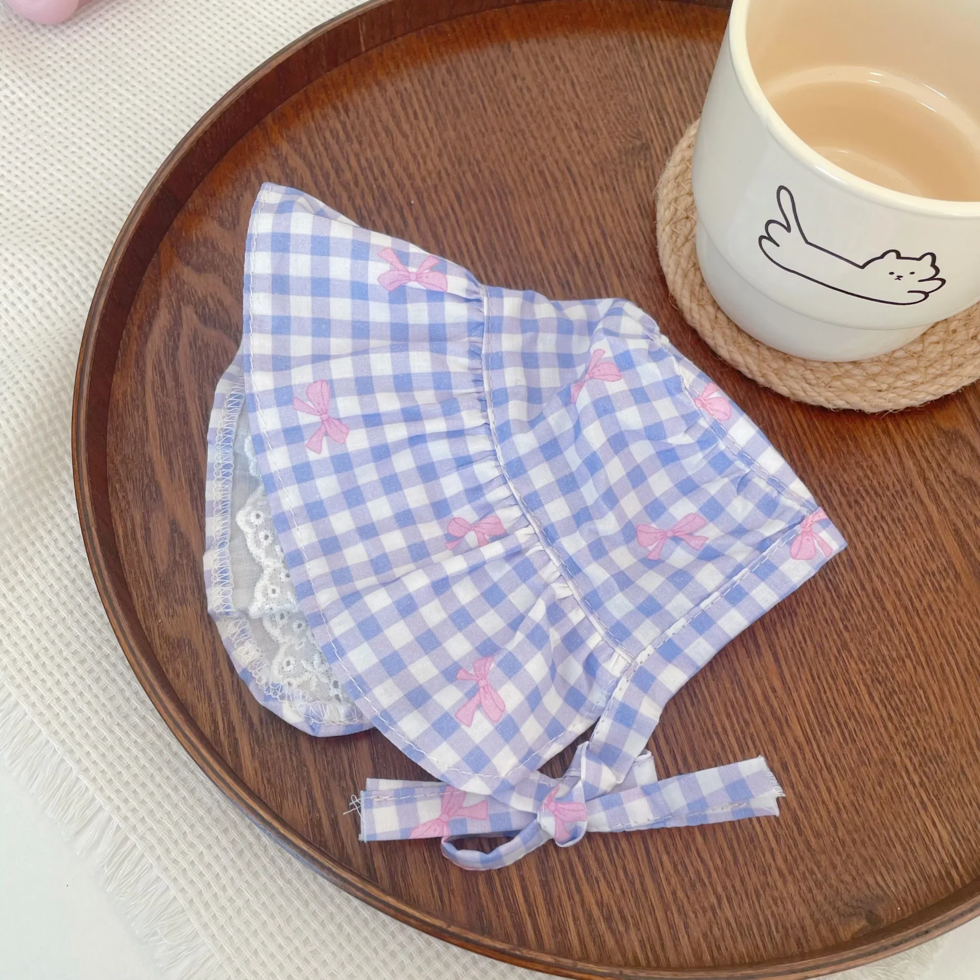 Lindo conjunto de sombrero y Collar para mascotas, sombrero a cuadros para perro/gato con Collar de encaje, adorables accesorios para sombreros de cachorro y gatito para fotos
