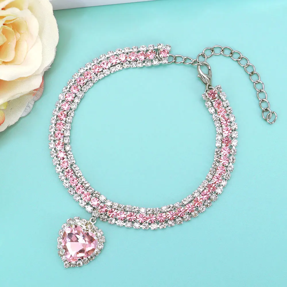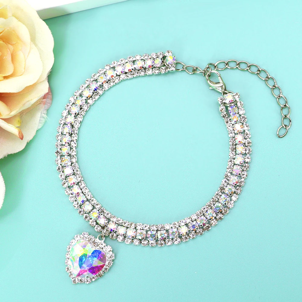 Lindo lujo cristal diamante gato perro Collar colgante accesorios de diamantes de imitación ajustable pequeño cachorro gatito collar mascotas collares