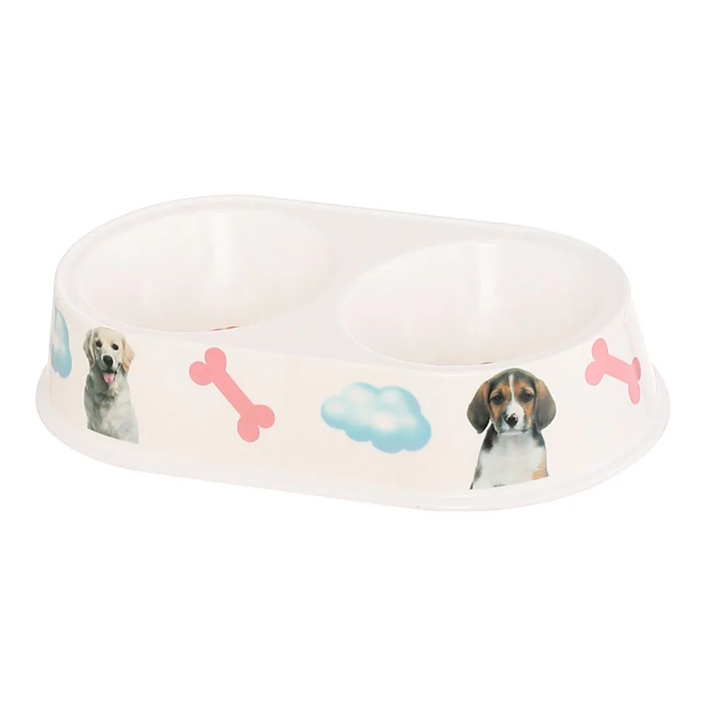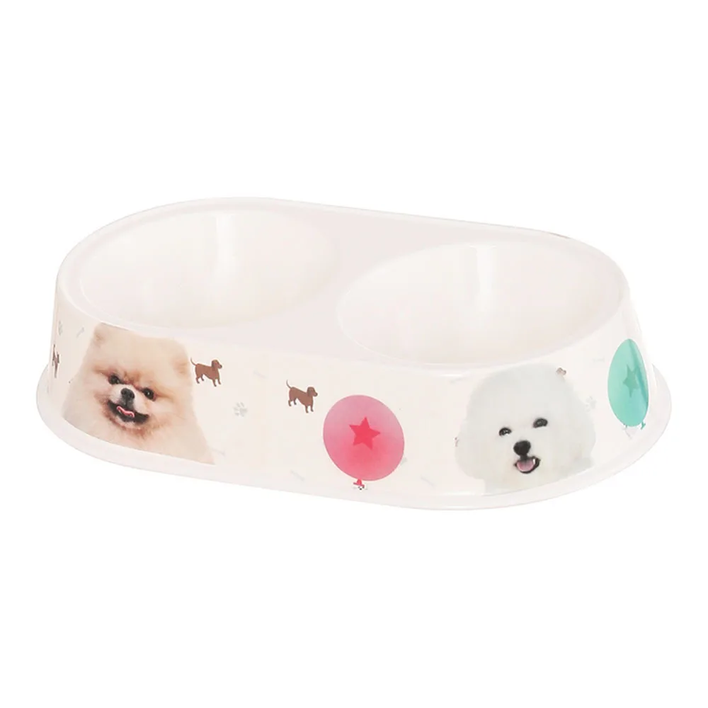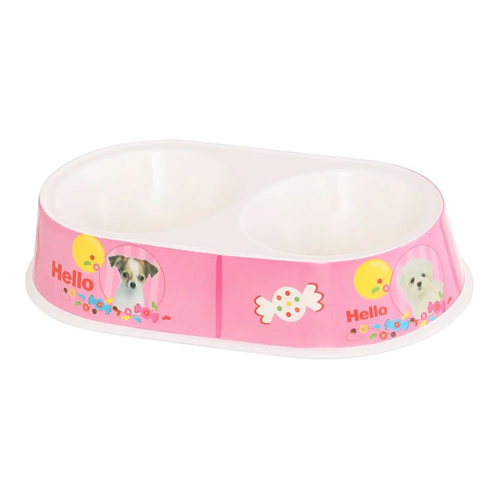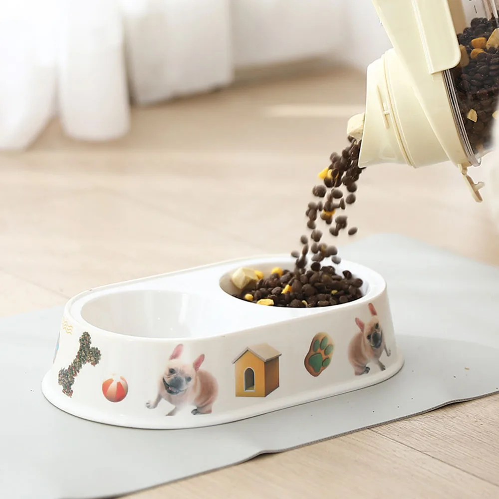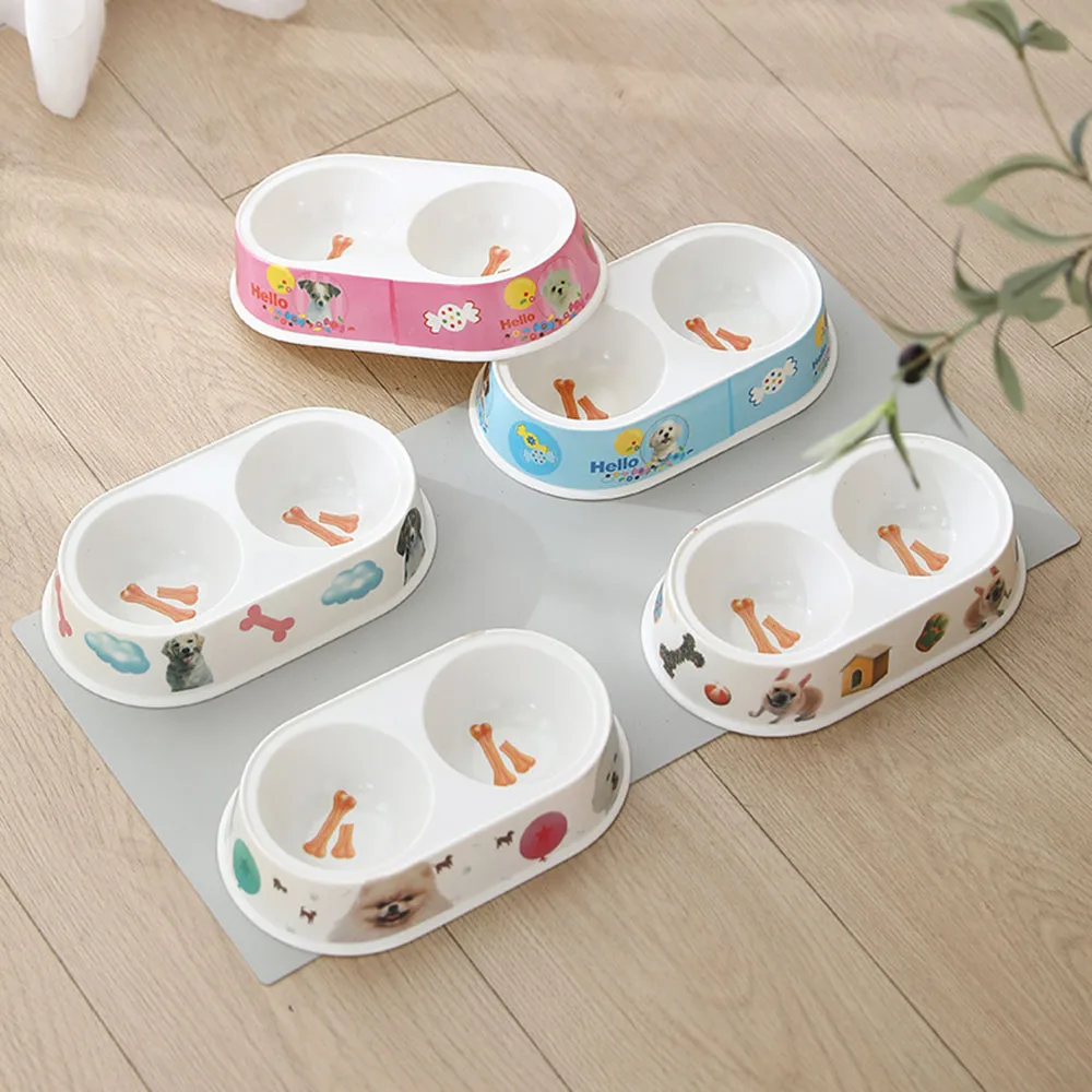 Lindo cuenco para mascotas con doble compartimento impreso, cuenco redondo antiderrames para comida, plato de alimentación para mascotas antideslizante duradero para gatos y perros