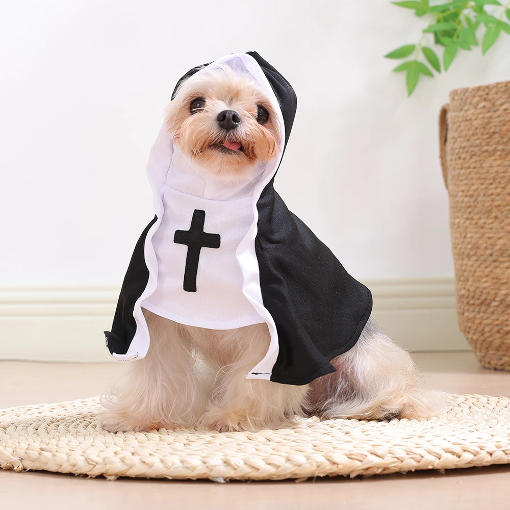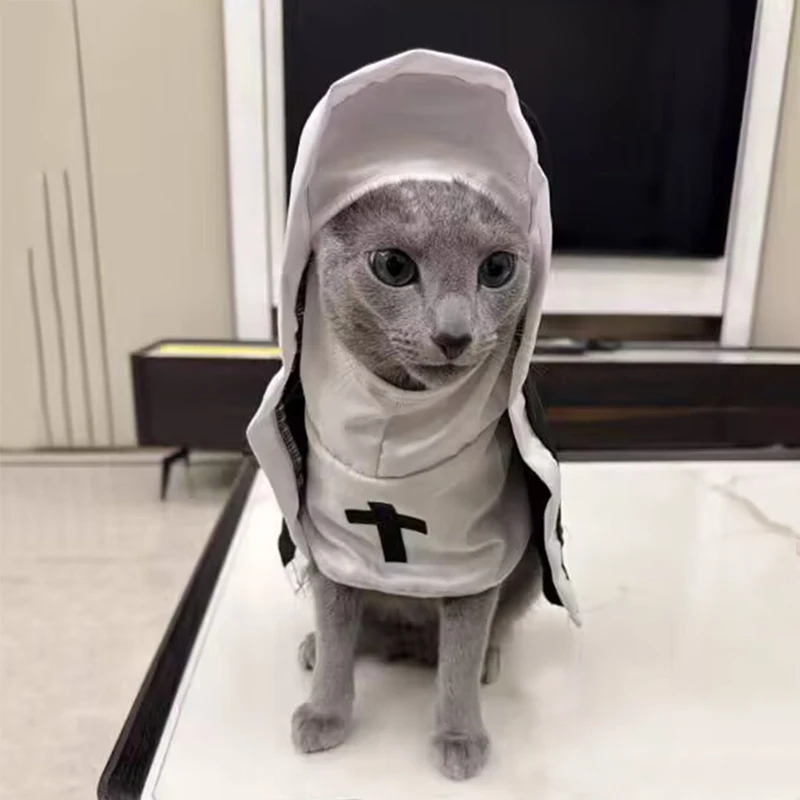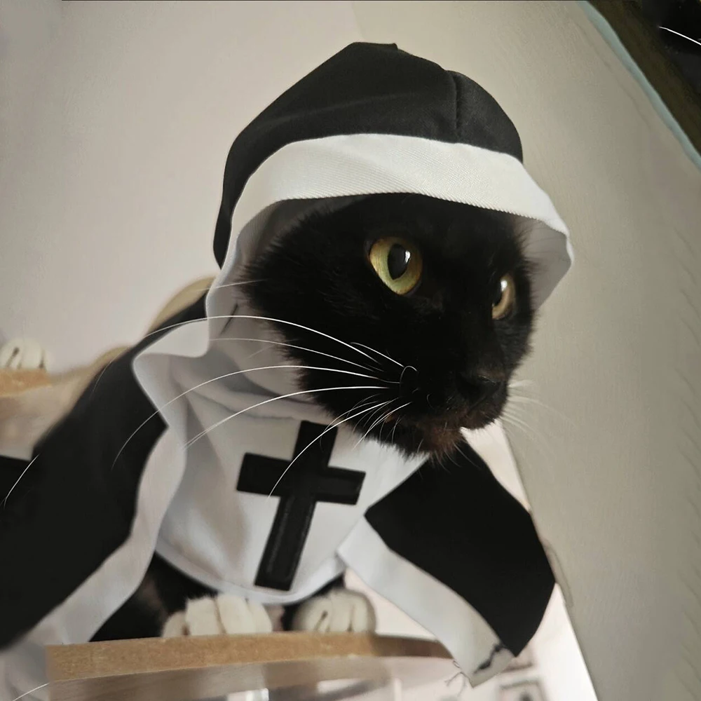 Lindo disfraz de gato de monja, ropa divertida de Halloween para gatos, vestido, trajes de Cosplay, transpirable, cachorro, gatito, vestido cruzado, regalos de fiesta